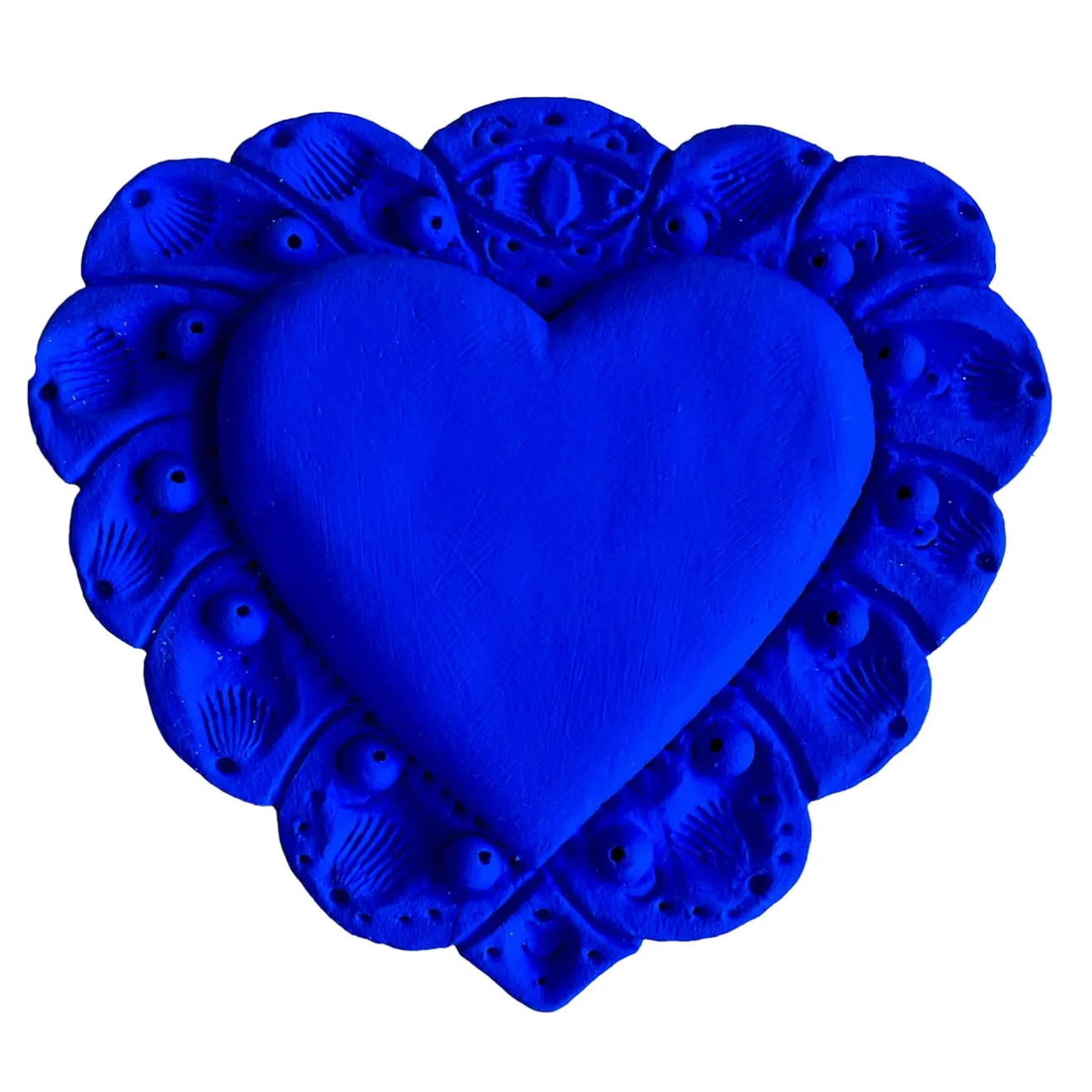 Amelia Corvino Scultura Da Parete Milagros Cuore Sacro In Gesso Blu