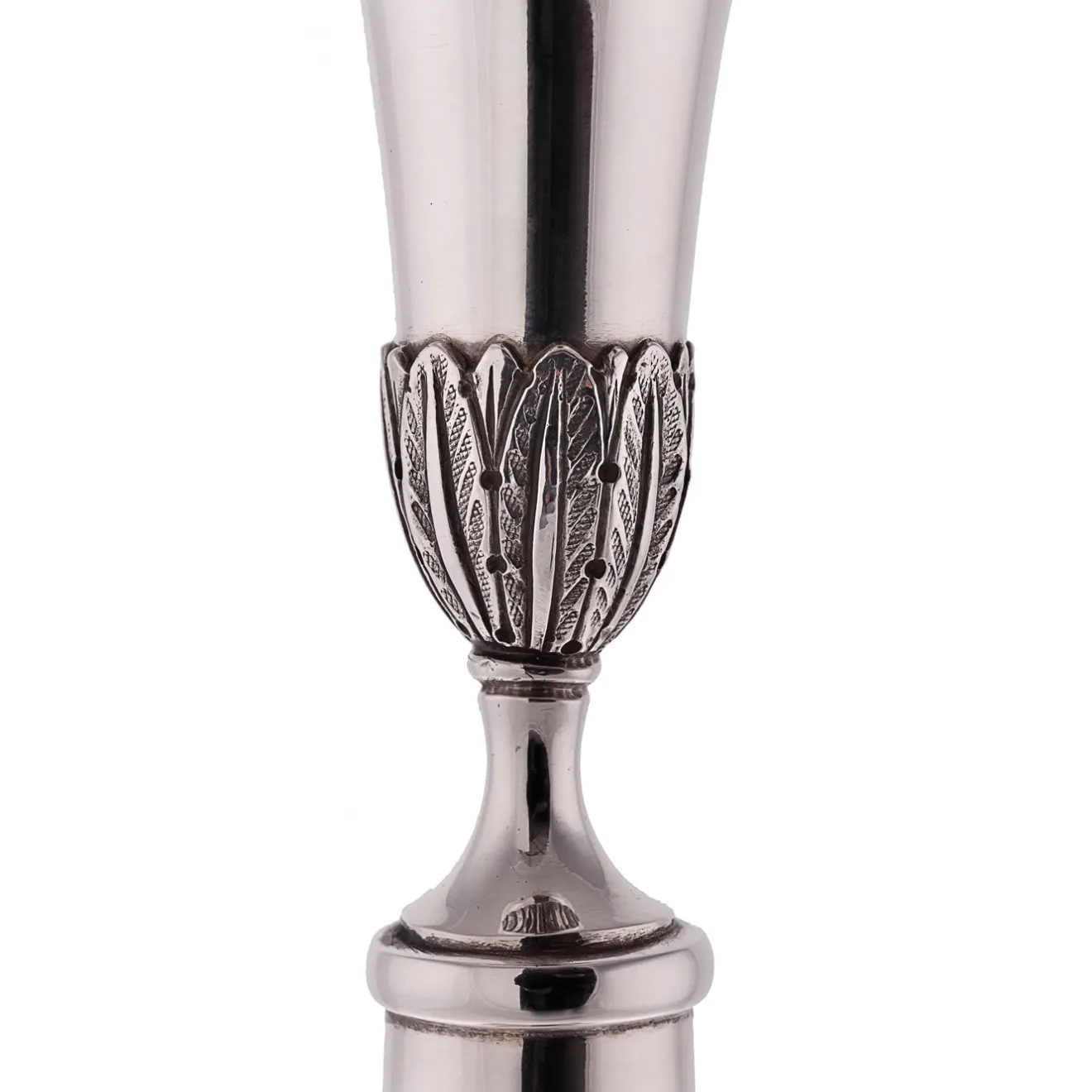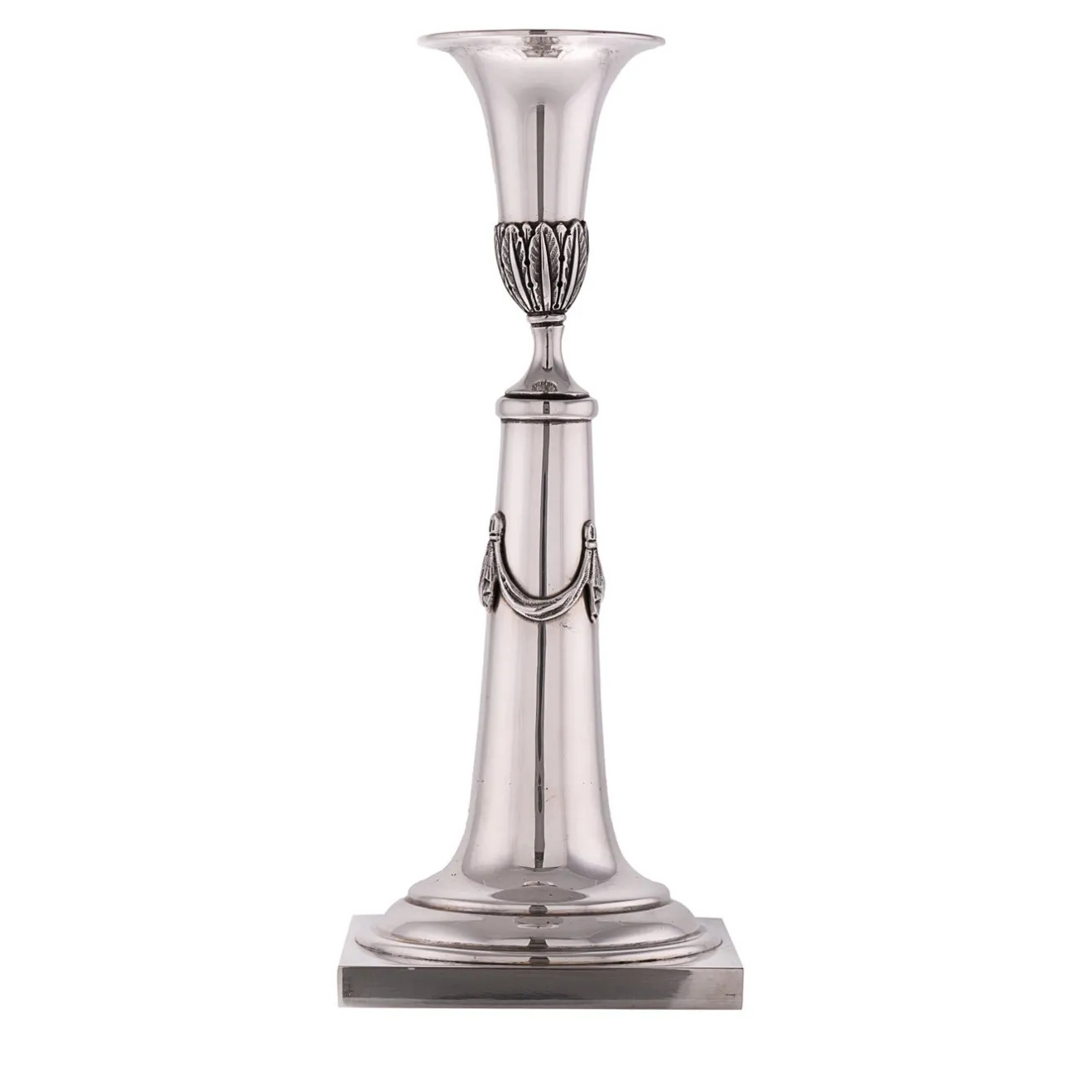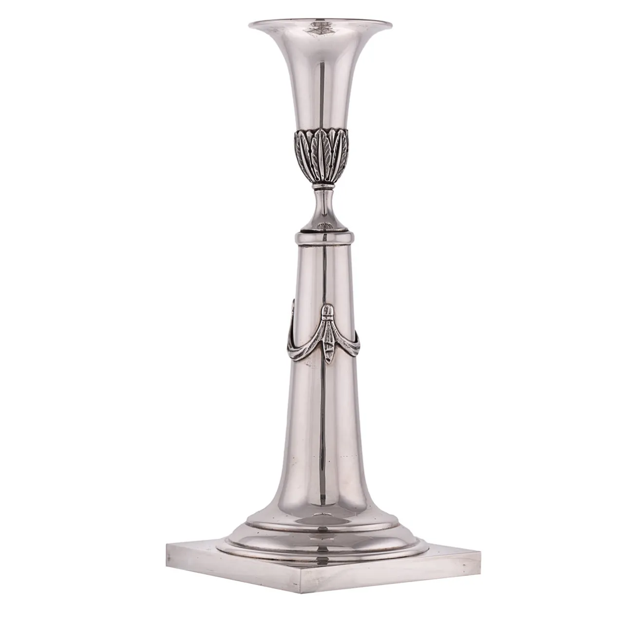 Coppia di candelieri in argento 925 cesellati a mano dalla storica bottega argentiera fiorentina Pagliai. I pezzi sono modellati su un originale austriaco del 1860, una commissione privata la cui eleganza ha spinto gli argentieri Pagliai a replicarlo per altri clienti e collezionisti.