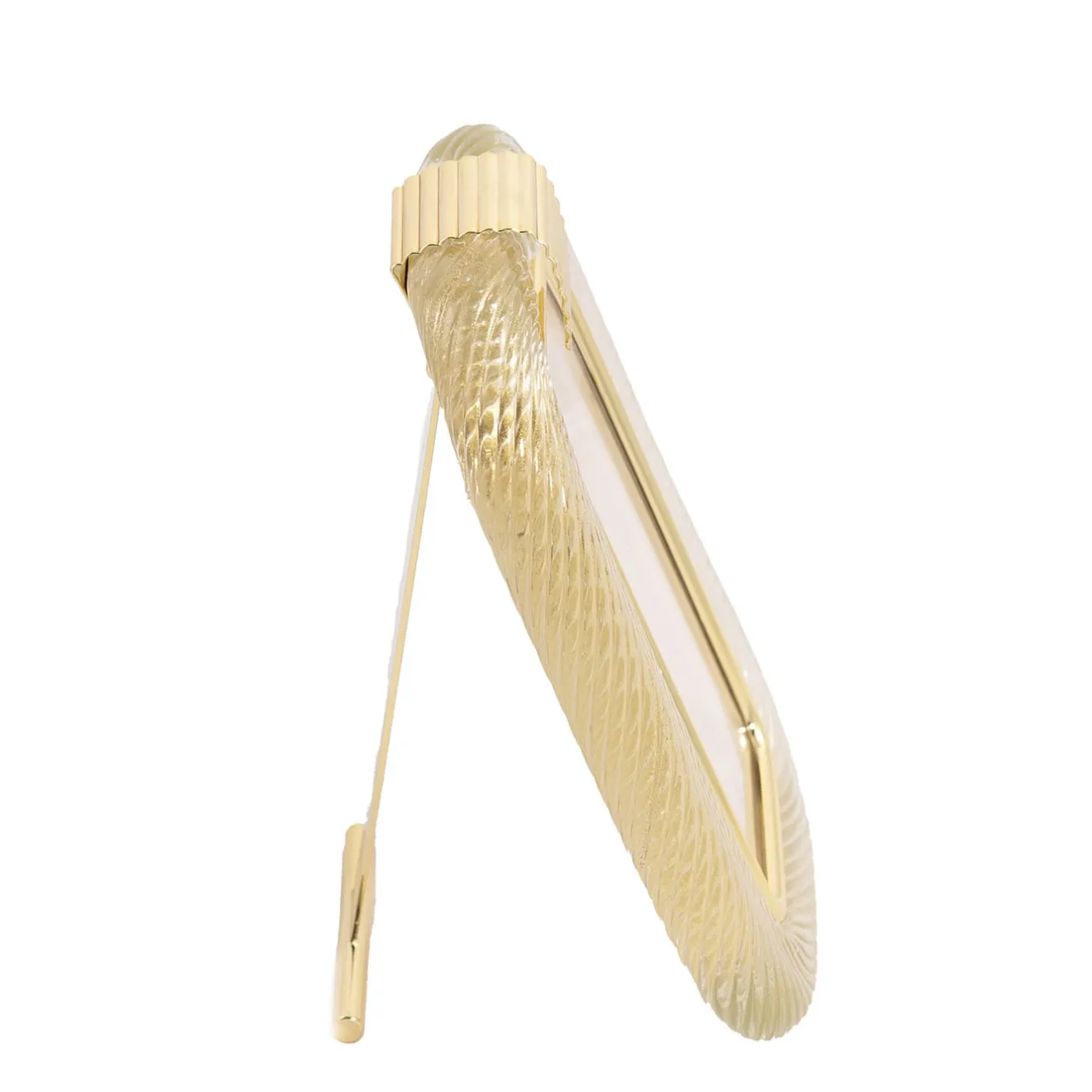 Questa cornice è realizzata a mano in una storica vetreria veneziana con la tradizionale tecnica della soffiatura, impreziosita da una foglia d’oro 24 kt che conferisce al vetro una luce calda e lucente. La struttura in ottone sagomata a mano presenta una finitura lucida, mentre l’ottone opaco è disponibile su richiesta. Ulteriori varianti di colore sono disponibili nel catalogo Artemest. Su richiesta è disponibile una misura più grande; per ulteriori informazioni, contattare il Concierge.