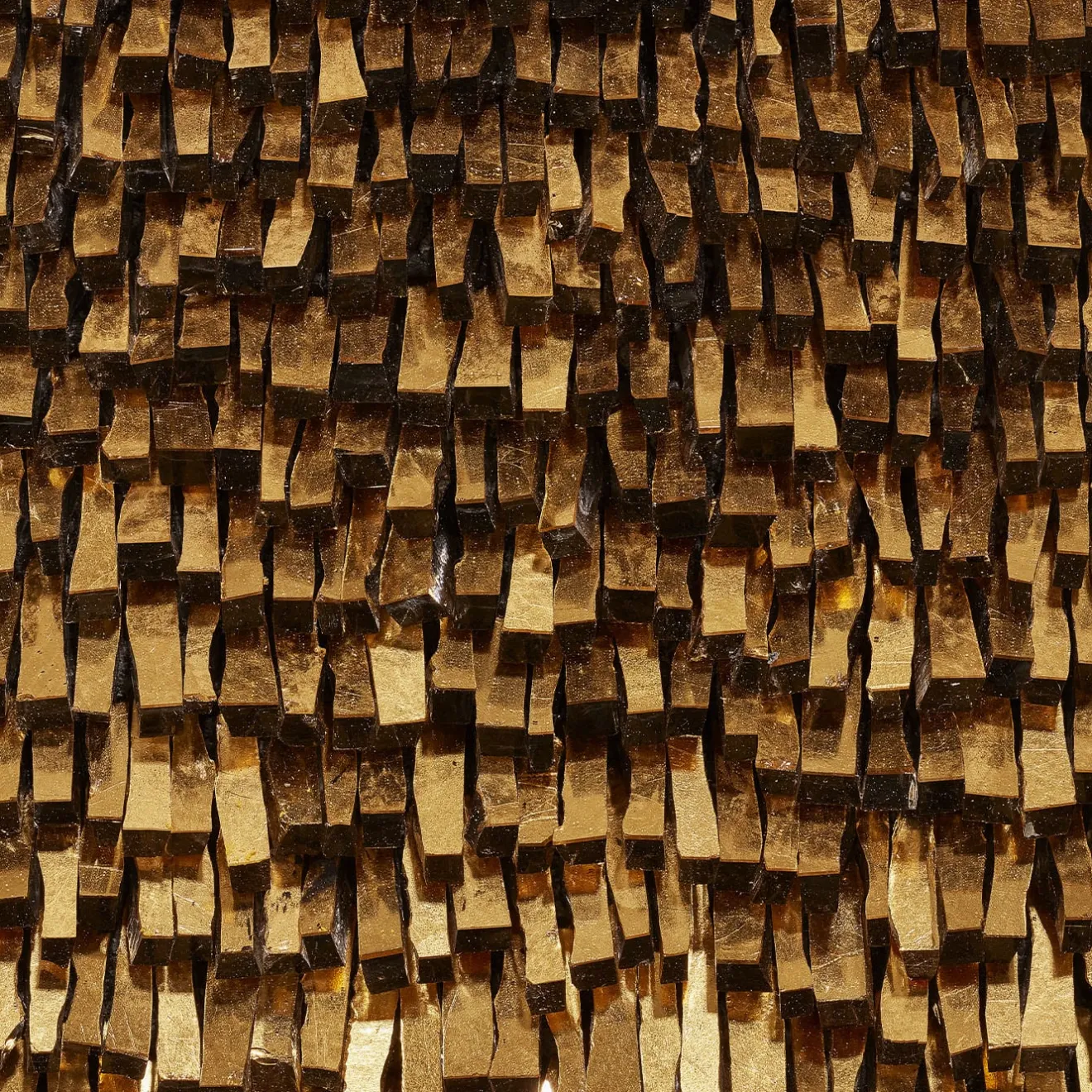 Splendido pezzo decorativo con pasta di vetro, foglia d’oro, ossidi colorati e malta, montato su un pannello di legno multistrato con una cornice di ferro. L’effetto sfumato passa da toni profondi e terrosi a radiose tonalità dorate, creando una composizione drammatica e luminosa. Questo pezzo è una miscela armoniosa di artigianato senza tempo ed eleganza moderna, perfetta per valorizzare qualsiasi interno sofisticato.