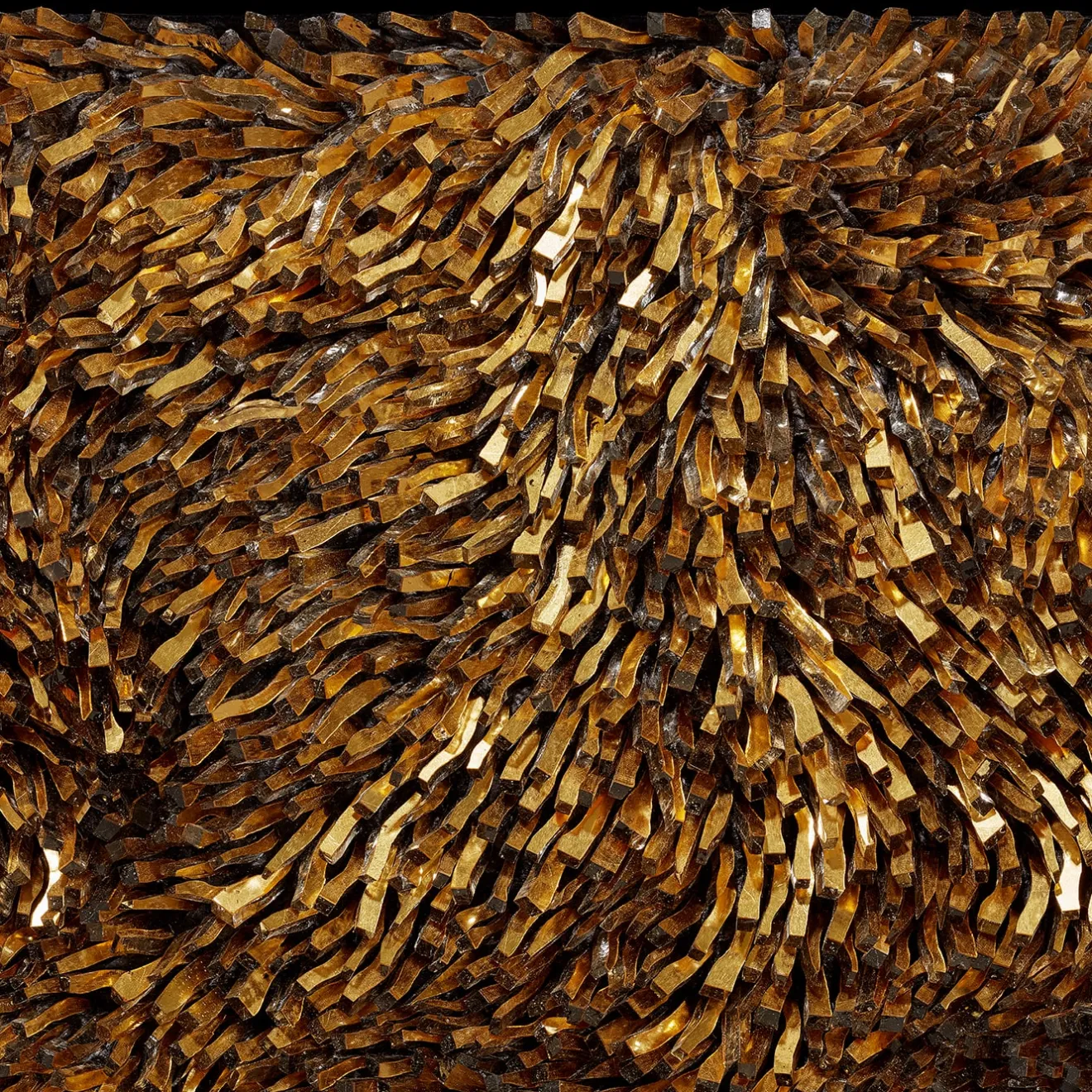 Il pannello decorativo “Movimento n262” incarna l’eleganza con il suo design sorprendente composto da elementi di vetro intricatamente disposti e ornati con foglia d’oro. Questo pannello decorativo è realizzato con ossidi colorati e una robusta malta incorporata in una struttura a nido d’ape, che garantisce durata e raffinatezza. Ideale per una vasta gamma di interni, il pannello funge da accattivante punto focale negli spazi abitativi, aggiungendo un tocco di lusso e di arte. Il gioco unico di luci e ombre sui toni dell’oro ne esalta il fascino visivo, rendendolo un’aggiunta perfetta agli stili di arredamento contemporanei o classici. Quest’opera d’arte incarna una miscela armoniosa di artigianato moderno ed estetica tradizionale, elevando qualsiasi ambiente in cui viene inserita.