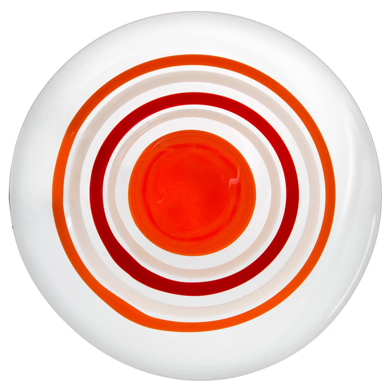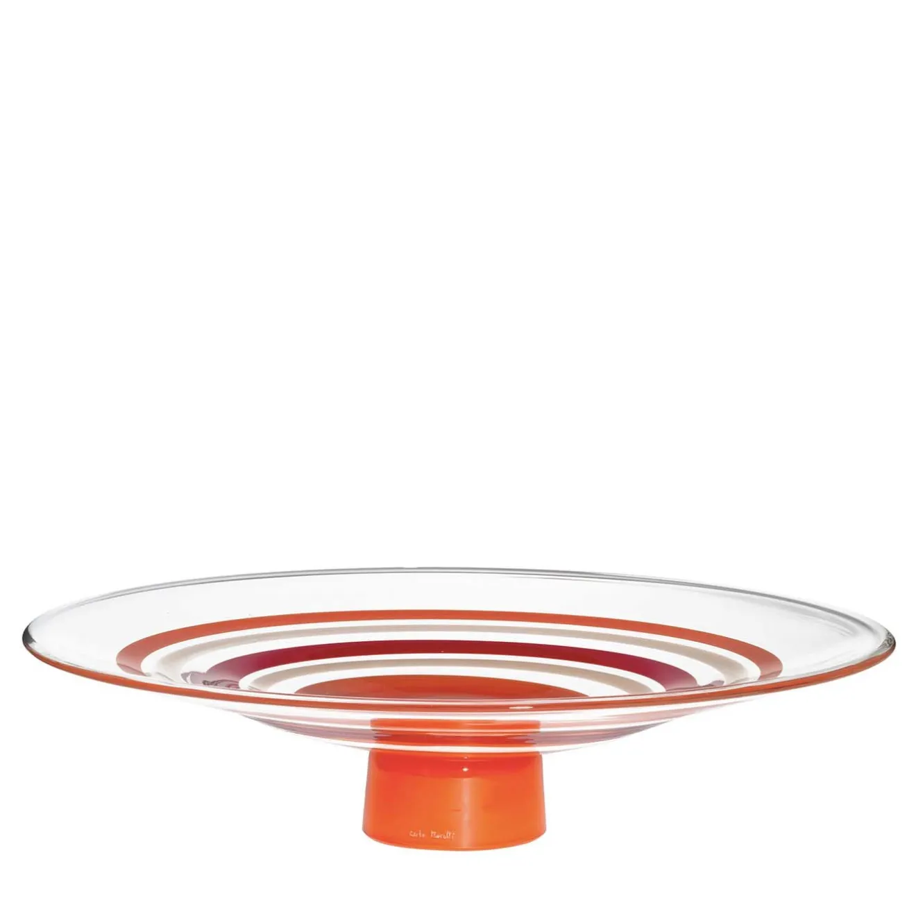 Ci vogliono 20 anni per diventare maestri vetrai e solo i più abili possono utilizzare la tecnica della “mano volante” per creare questa splendida opera d’arte. Questo centrotavola, realizzato in cristallo di Murano soffiato a bocca, vanta una splendida decorazione arancione e avorio applicata a mano mentre il vetro è ancora caldo. Questo sorprendente oggetto scultoreo può sostenere la frutta su un tavolo da pranzo o esporre oggetti da collezione su una console da salotto o su un tavolino da caffè, diventando un elemento di spicco in una casa moderna e raffinata. Fa parte di una serie limitata di 333 pezzi, ciascuno firmato e datato.