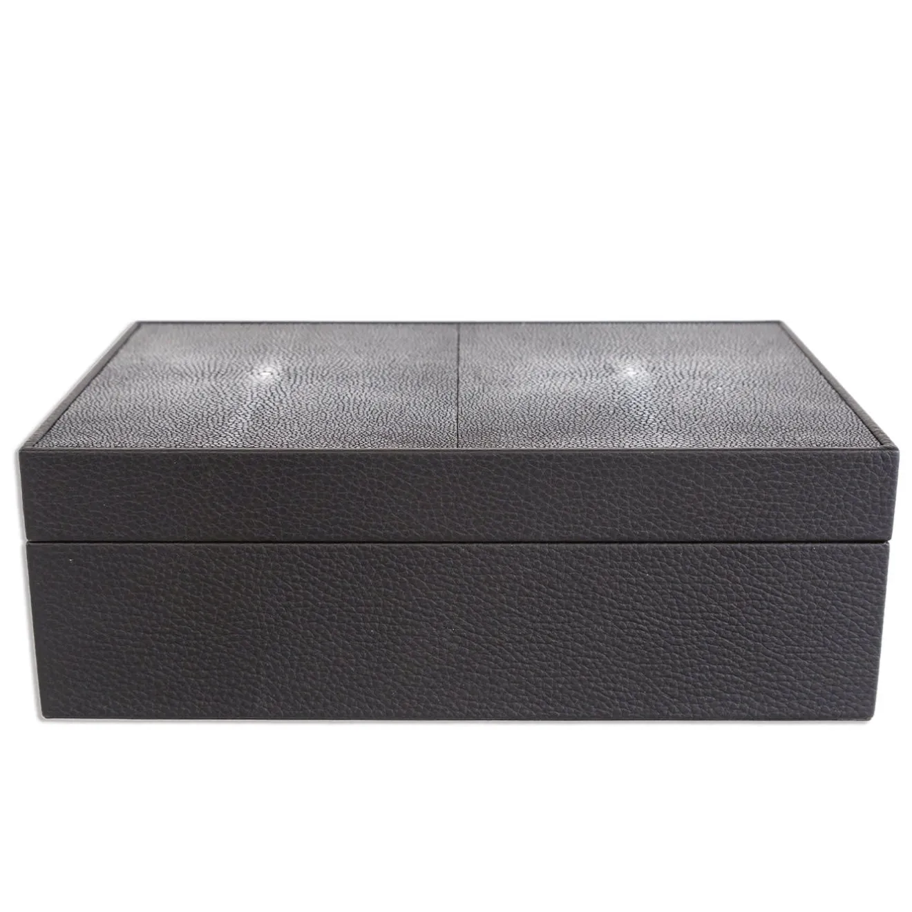 Scatola per orologi in legno realizzata a mano in vera pelle pregiata e morbida con parte superiore in vera pelle di razza e tessuto interno in microfibra. Disponibile anche in diversi colori.