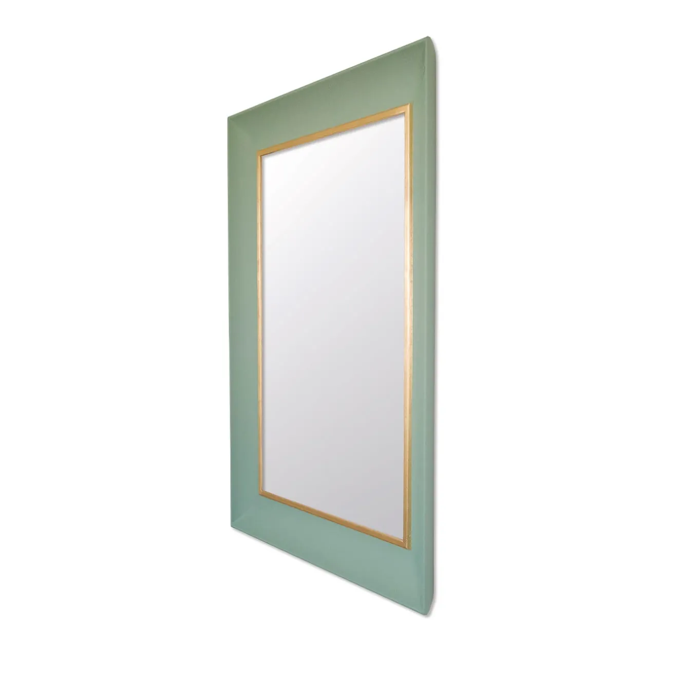 Con una splendida tonalità verde pastello impreziosita da un bordo interno rivestito di preziosa foglia d’oro, questo splendido specchio sarà un accento moderno per l’arredamento di un soggiorno, di una camera da letto o di un ingresso. Con una cornice minimalista, è rivestito da una raffinata e morbida pelle a grana grossa. Disponibile in 13 colori, per i dettagli consultare il catalogo Artemest.
