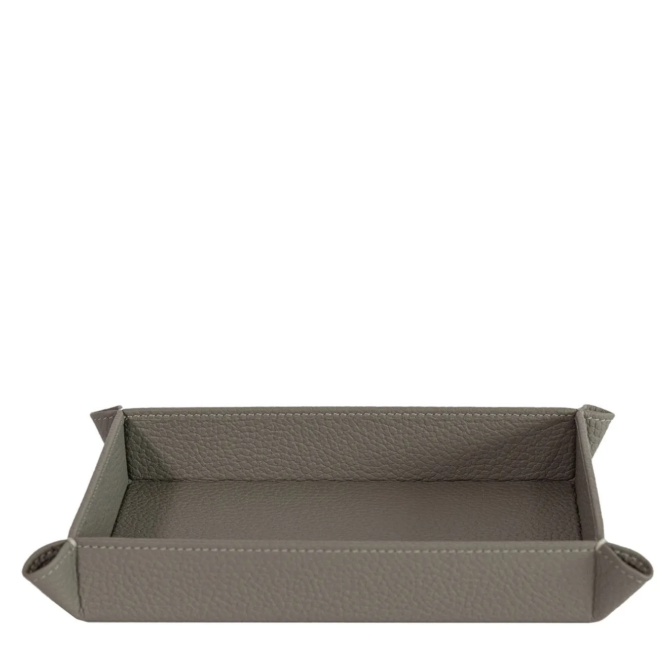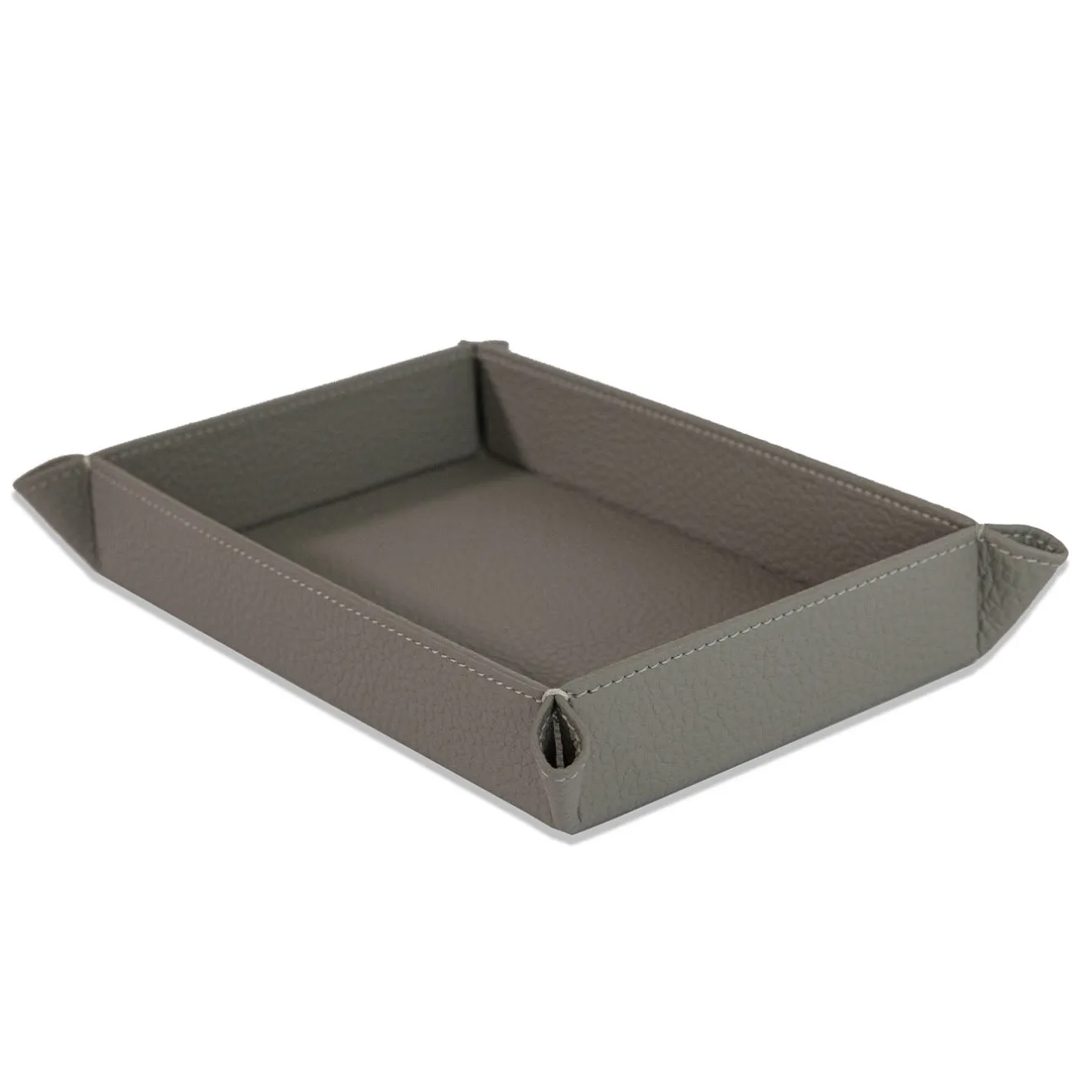 Un portaoggetti realizzato in pregiata pelle pieno fiore, progettato per mantenere piccoli oggetti ordinati. Presenta una forma rettangolare con bordi accuratamente cuciti e angoli piegati, unendo praticità ed eleganza discreta. Ideale per riporre chiavi, monete o accessori, arricchisce ogni ambiente con la sua sobria raffinatezza. Disponibile in una varietà di colori; per maggiori informazioni, contattare il Concierge.