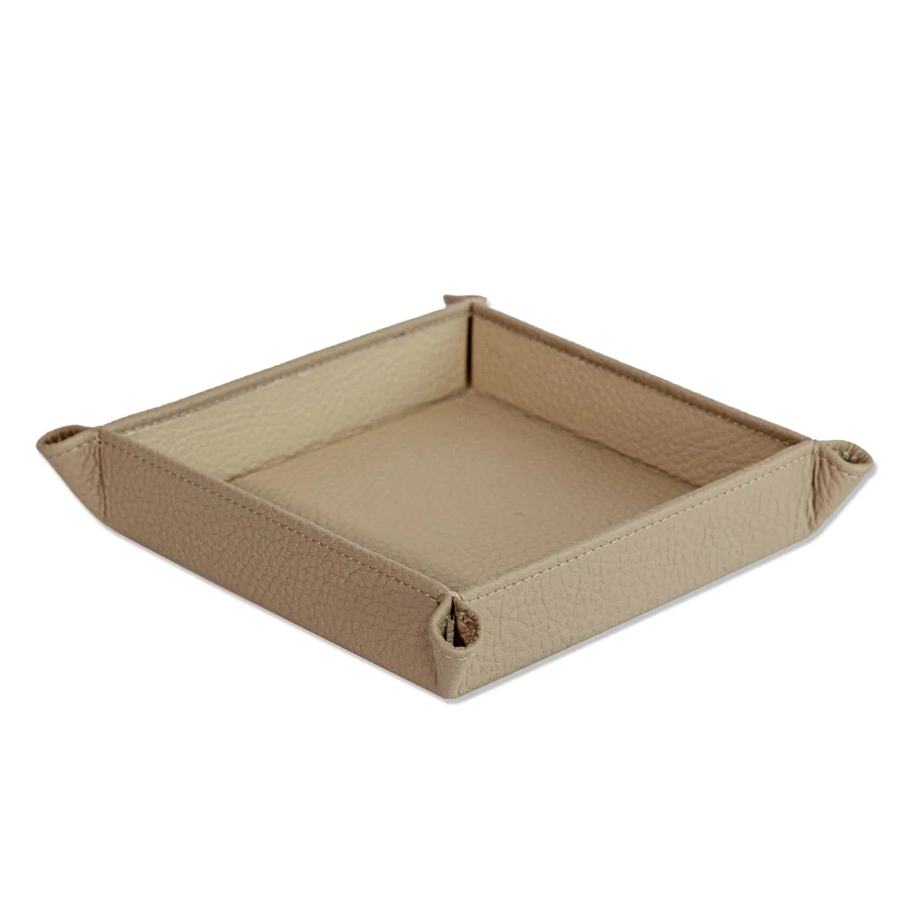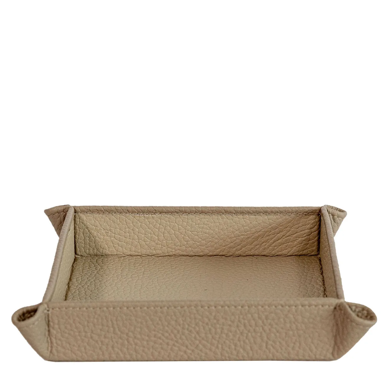 Un portaoggetti artigianale rivestito in pregiata pelle pieno fiore beige. Progettato per contenere ordinatamente gli oggetti essenziali di tutti i giorni, questo pezzo si adatta facilmente a diversi stili d’interni. Ideale per riporre chiavi, monete o accessori, arricchisce ogni ambiente con la sua sobria raffinatezza. Disponibile in una versatile palette di quindici colori; per maggiori informazioni, contattare il Concierge.