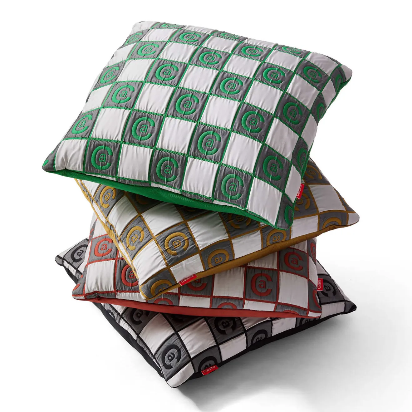 Cuscini decorativi con quattro motivi: personalità diverse che, attraverso splendide geometrie e firme cromatiche, nell’interconnessione tra forme e colori, tra luoghi e persone e tra oggetti, si avvalgono di sfumature e accostamenti per conferire dinamismo all’arredamento. L’uso di una griglia modulare bilancia la composizione grafica, creando ordine visivo.