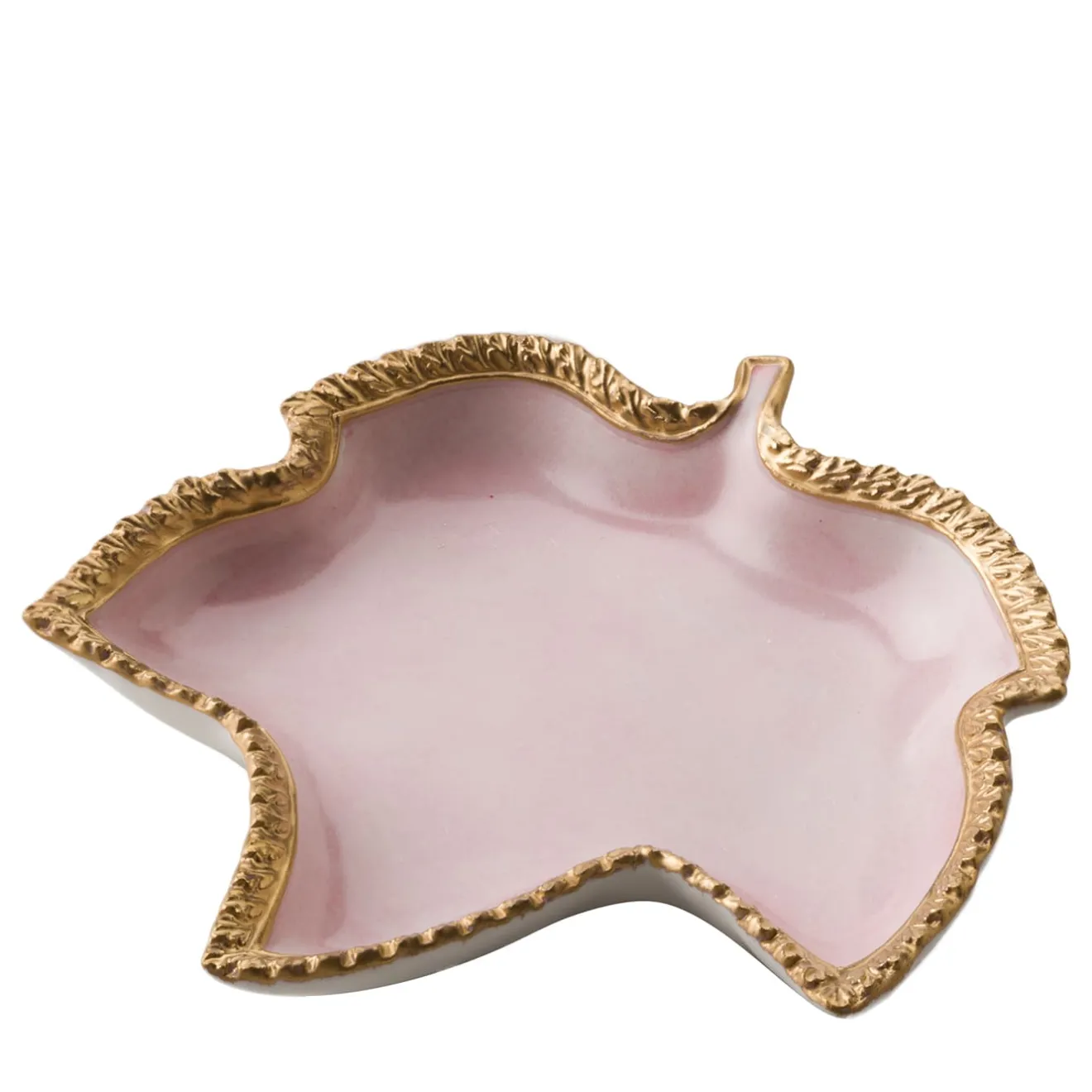 Cattin Porcellane Videpoche rosa e oro con foglie di vite