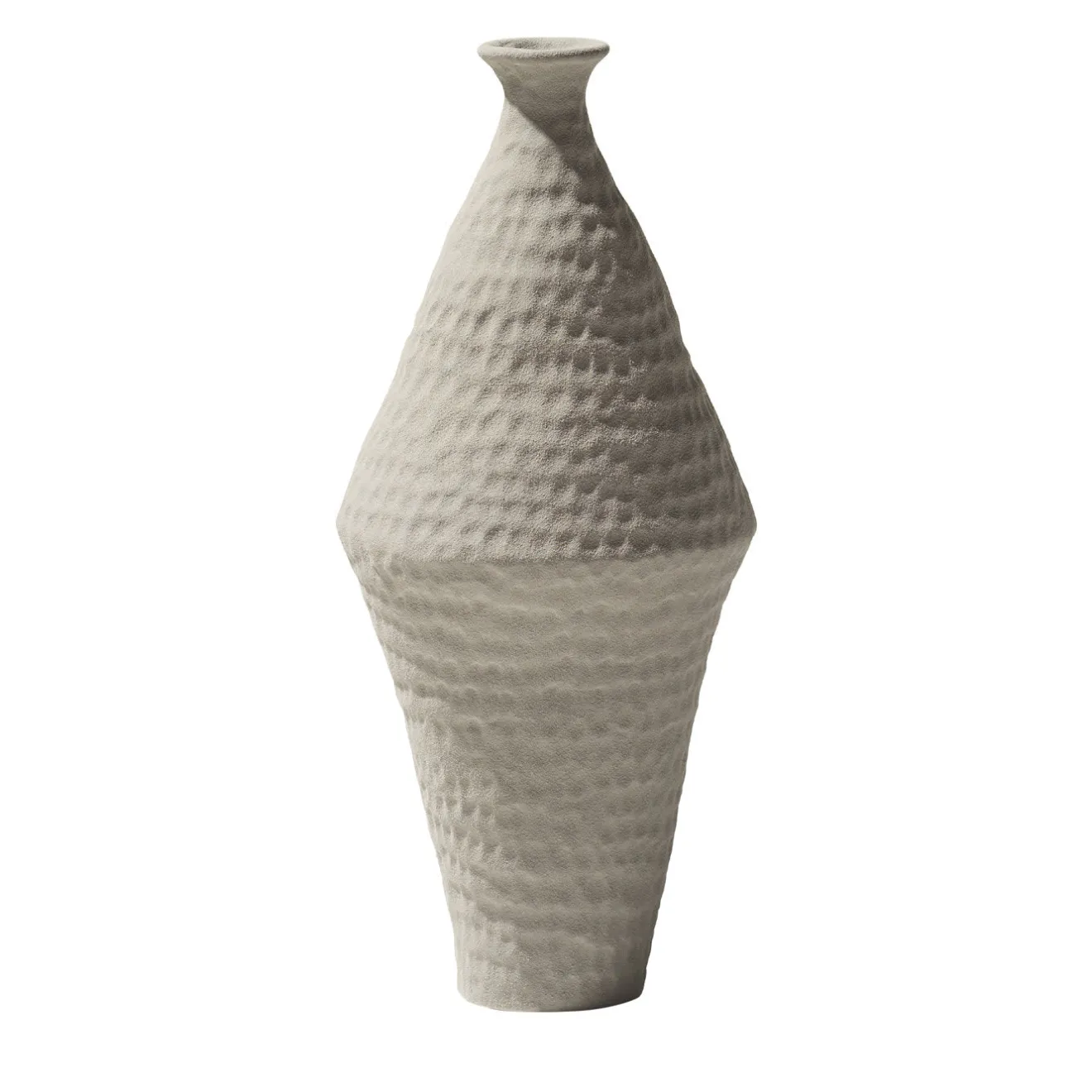 Mettete in mostra un bouquet di fiori freschi con questo splendido vaso di forma romboidale disegnato da Andrea Anastasio. Scultorea ed elegante, la silhouette geometrica presenta due parti simmetriche e un collo corto, rifinito in grigio chiaro opaco la cui superficie è decorata con la texture martellata caratteristica della Collezione Battuti. L’inaspettata forma a specchio del vaso crea equilibrio e simmetria e aggiunge un tocco artistico e contemporaneo a qualsiasi spazio.