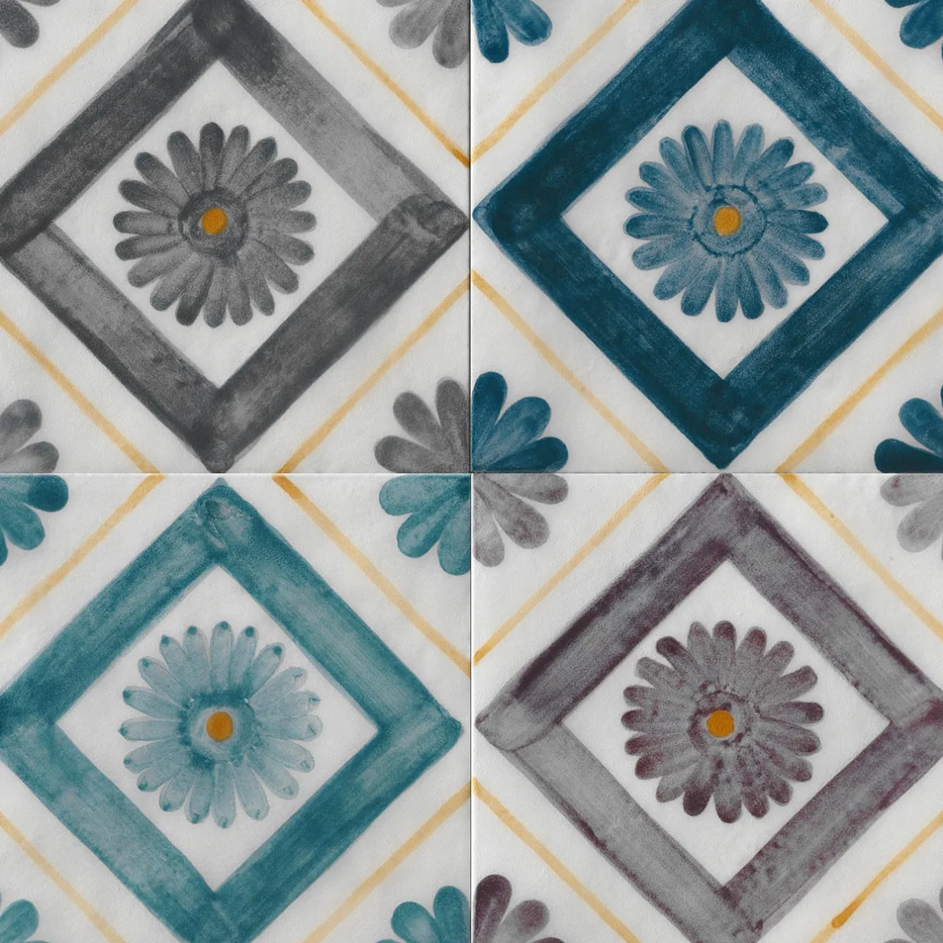 Questo splendido set di 24 piastrelle quadrate in ceramica vanta un vivace motivo che abbina riferimenti floreali e geometrici. Abilmente smaltata e decorata a mano con un vibrante smalto blu che ricorda le acque profonde dell’oceano, ogni piastrella è completamente unica e farà parte di una composizione ancora più colorata se acquistata in combinazione con altri set in diverse varianti di colore.