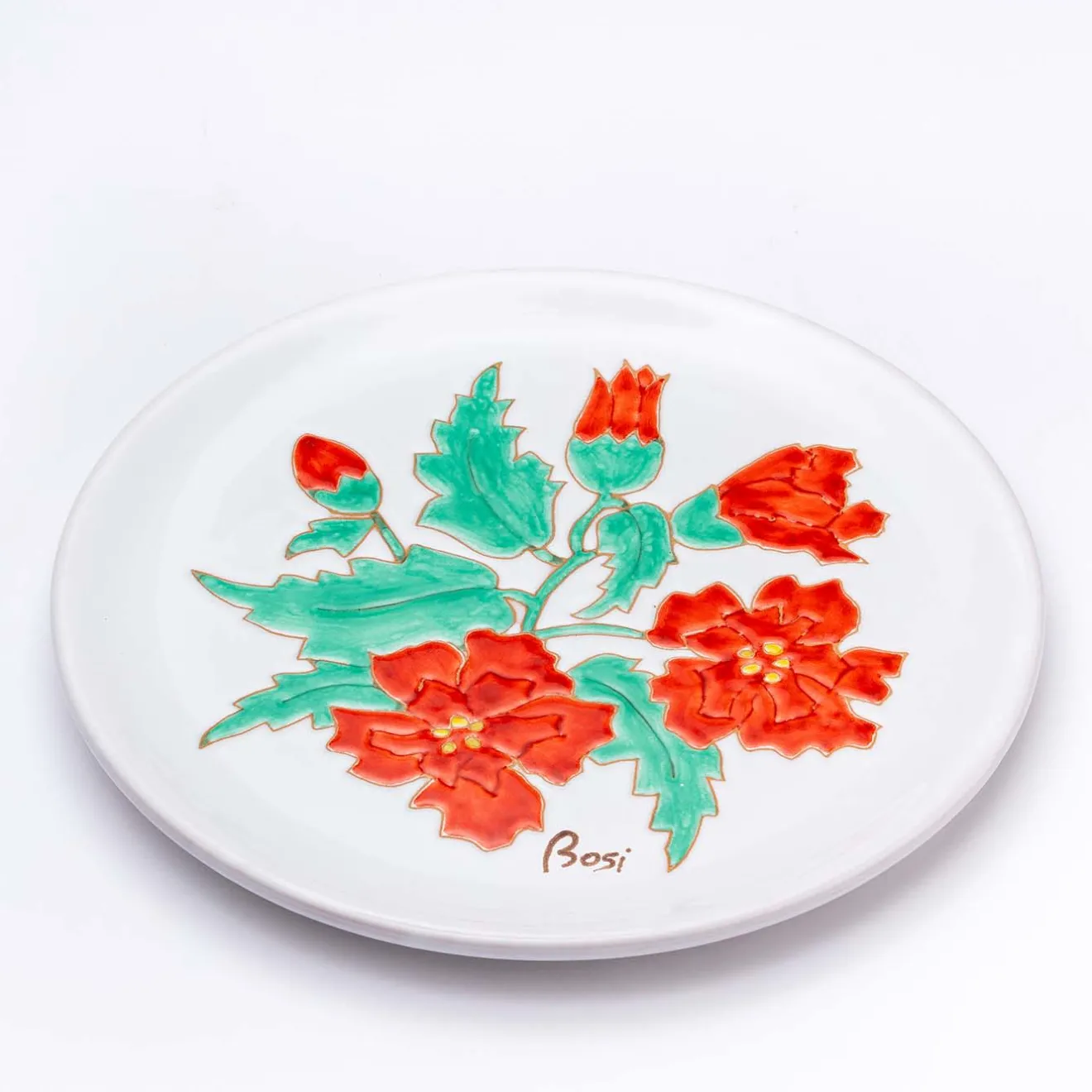 La rinascita della natura durante la primavera ha ispirato la rigogliosa decorazione floreale abilmente incisa a mano su questo piatto decorativo. Realizzato in ceramica di alta qualità, vanta fogliame e boccioli di fiori accuratamente dipinti rispettivamente in verde e rosso vivo, un insieme capace di trasmettere il fascino dei giardini in fiore. Sedurrà con il suo potenziale artistico sia sollevato su un piedistallo che appeso alle pareti.