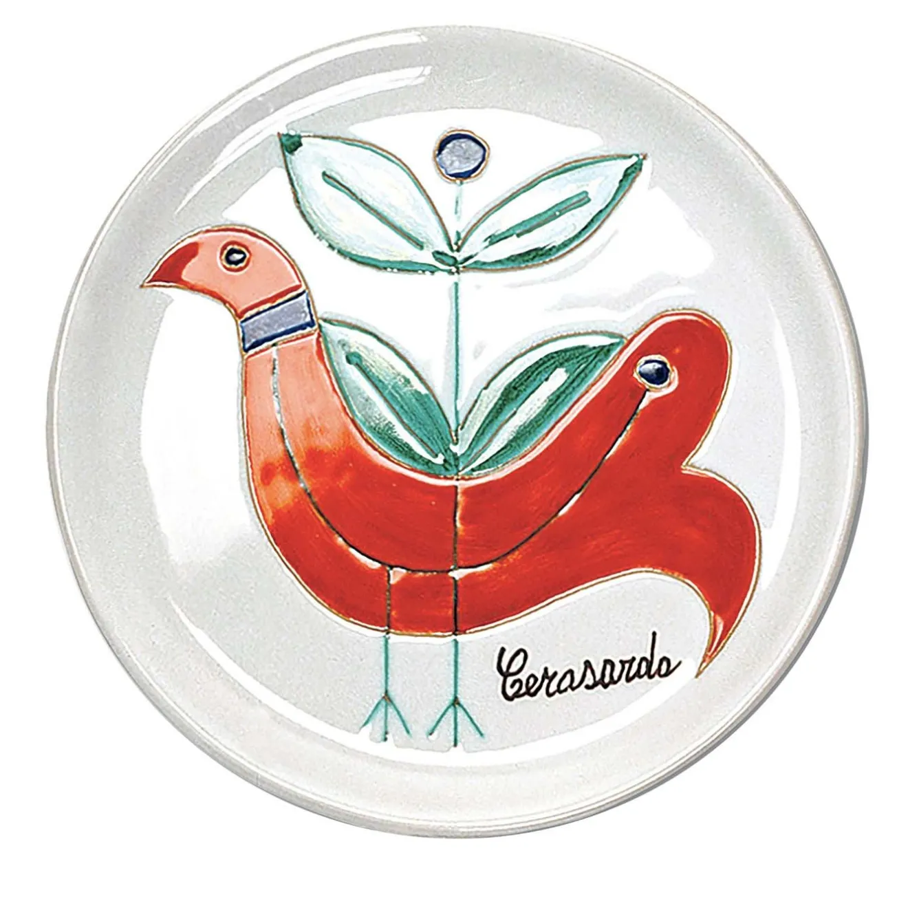 Parte di una serie di piatti artigianali, questo pezzo è decorato a mano con uno splendido simbolo sardo di pace, la “pavoncella”, il pavone. L’uccello stilizzato, che originariamente ornava le antiche cassapanche sarde, è raffigurato in uno stile nuovo grazie al metodo del graffito, con cui la terracotta viene graffiata per incorporare gli smalti dalle tonalità vivaci, per un oggetto unico e funzionale.