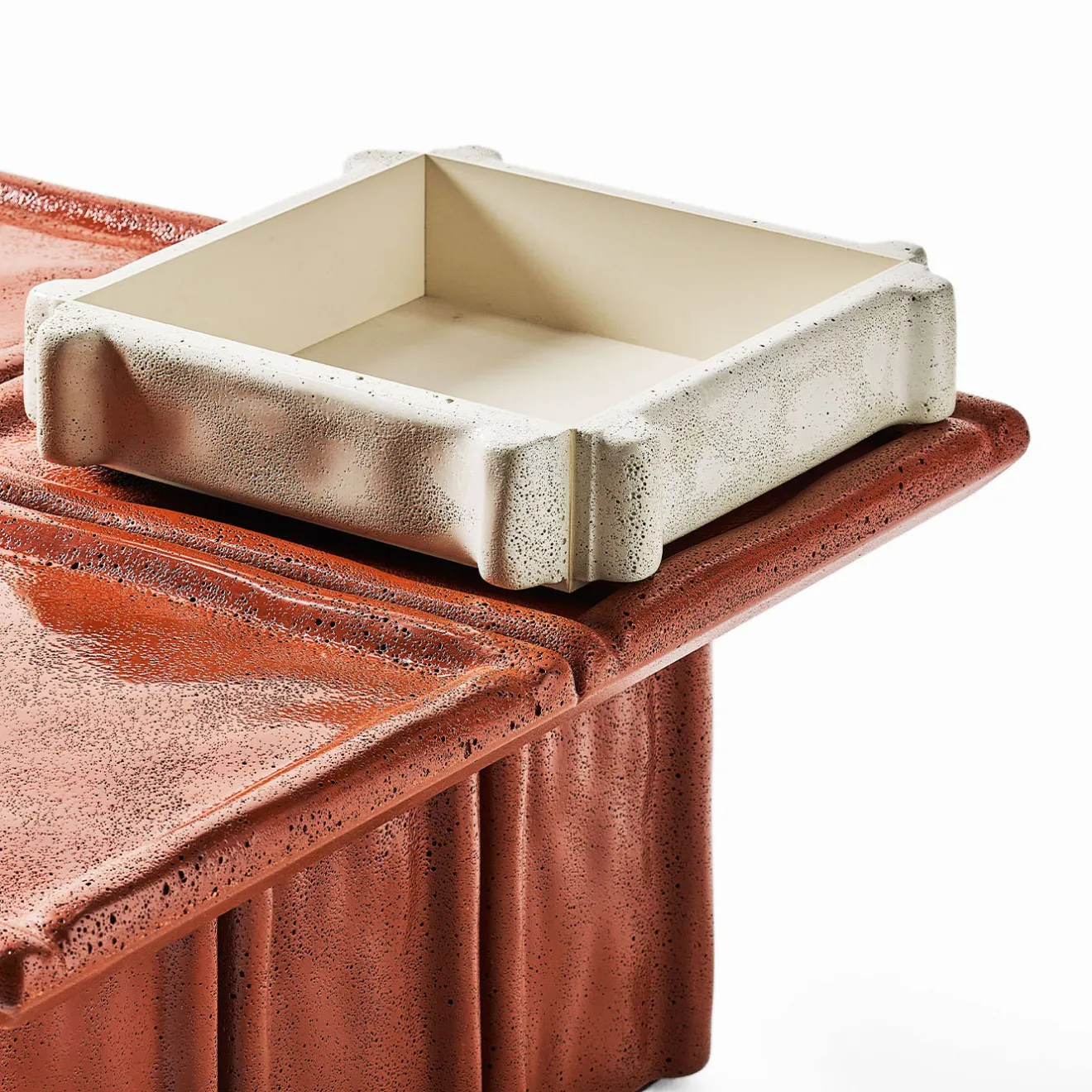 Lo svuotatasche decorativo bianco Riva di Patricia Urquiola cattura la fluidità dell’acqua attraverso i suoi volumi organici e modulari e i suoi bordi irregolari e pronunciati. La sua superficie dinamica riflette il ritmo delle onde che si infrangono, offrendo un’esperienza tattile e visiva che trasforma ogni ambiente. La forma scultorea del vide poche lo rende un’aggiunta distintiva agli interni contemporanei.