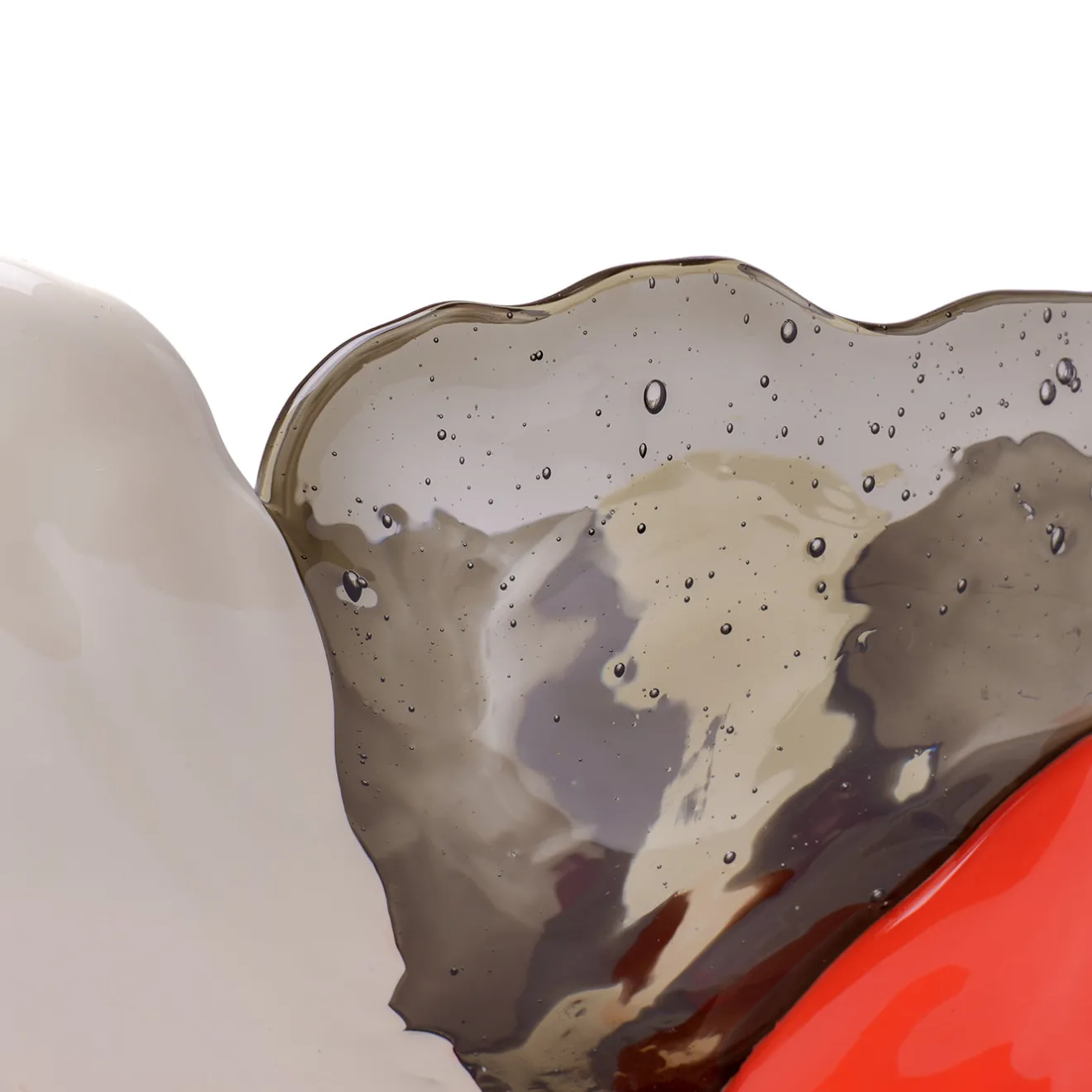 Un grande vaso decorativo della collezione Fish Design, creato da Gaetano Pesce nel 1995. Questo pezzo distintivo presenta una forma organica e irregolare con una combinazione dinamica di toni di fumè chiaro, avorio e arancione pastello. Sostenuto da tre vivaci piedi arancioni, il vaso offre un equilibrio sorprendente tra arte scultorea e arredamento funzionale, perfetto per interni contemporanei in cerca di un’affermazione audace.