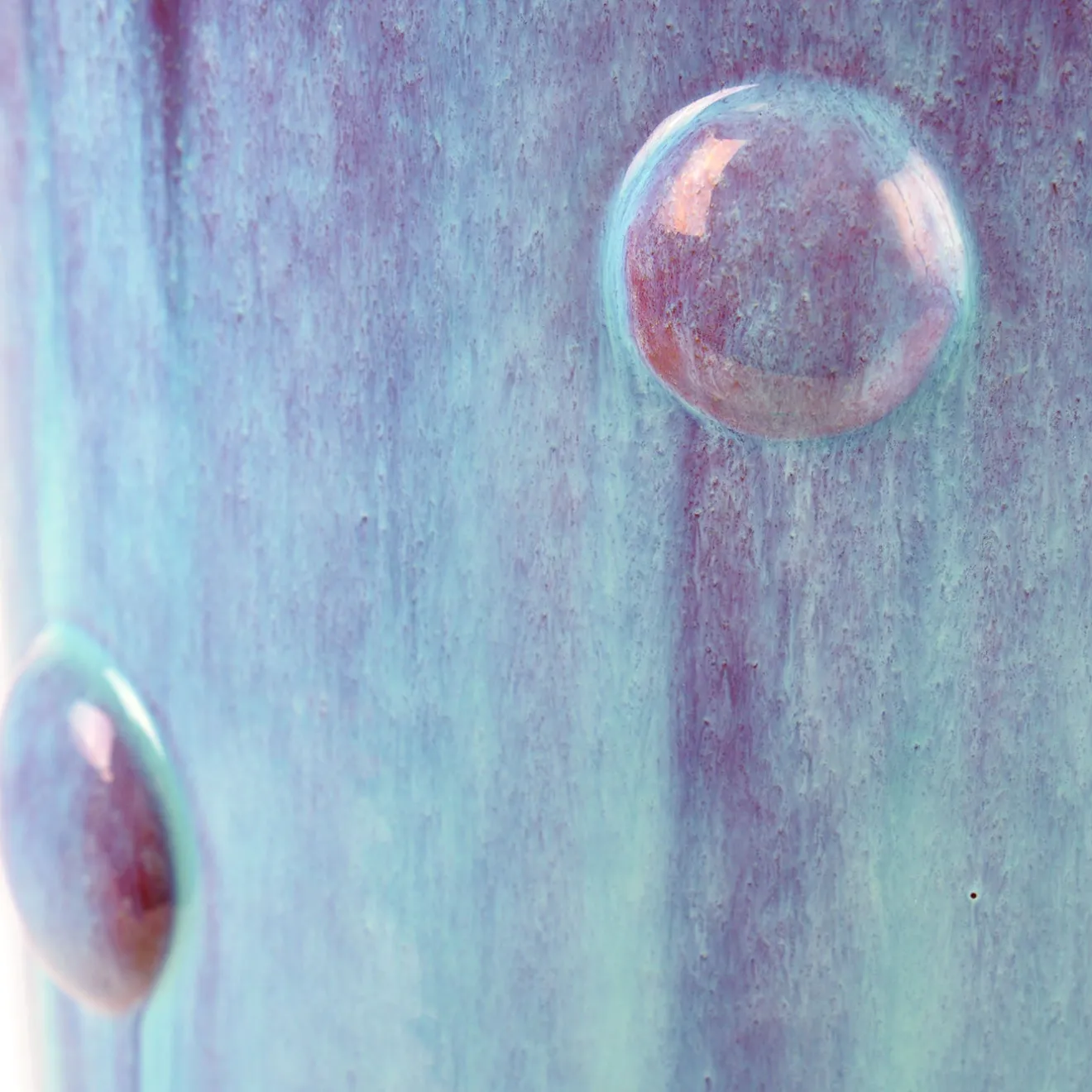 Il vaso Abisso Caraibi si distingue per la sua finitura unica, dipinta a mano con una texture organica che richiama le bolle d’aria che risalgono dalle profondità oceaniche. Di dimensioni medie, presenta una superficie lucida con leggere ondulazioni e dettagli testurizzati lungo il bordo superiore. Il suo gradiente di colore, ispirato alle sfumature del mare dei Caraibi, rende ogni pezzo esclusivo, con lievi variazioni che ne sottolineano l’artigianalità.