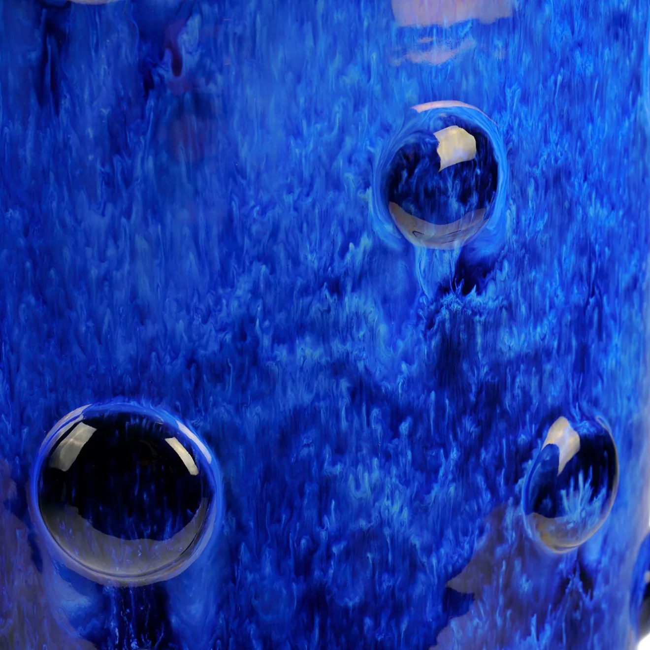 Il vaso Abisso si caratterizza per una profonda finitura blu lucida a specchio, arricchita da rilievi tattili a bolle che conferiscono una texture organica. La forma, tornita a mano, presenta scanalature delicate e un raffinato bordo svasato, che donano profondità e carattere al pezzo. Ogni esemplare mostra variazioni uniche di colore e dettaglio, testimonianza dell’eccellenza artigianale, e rappresenta un accento audace e originale per qualsiasi ambiente interno.