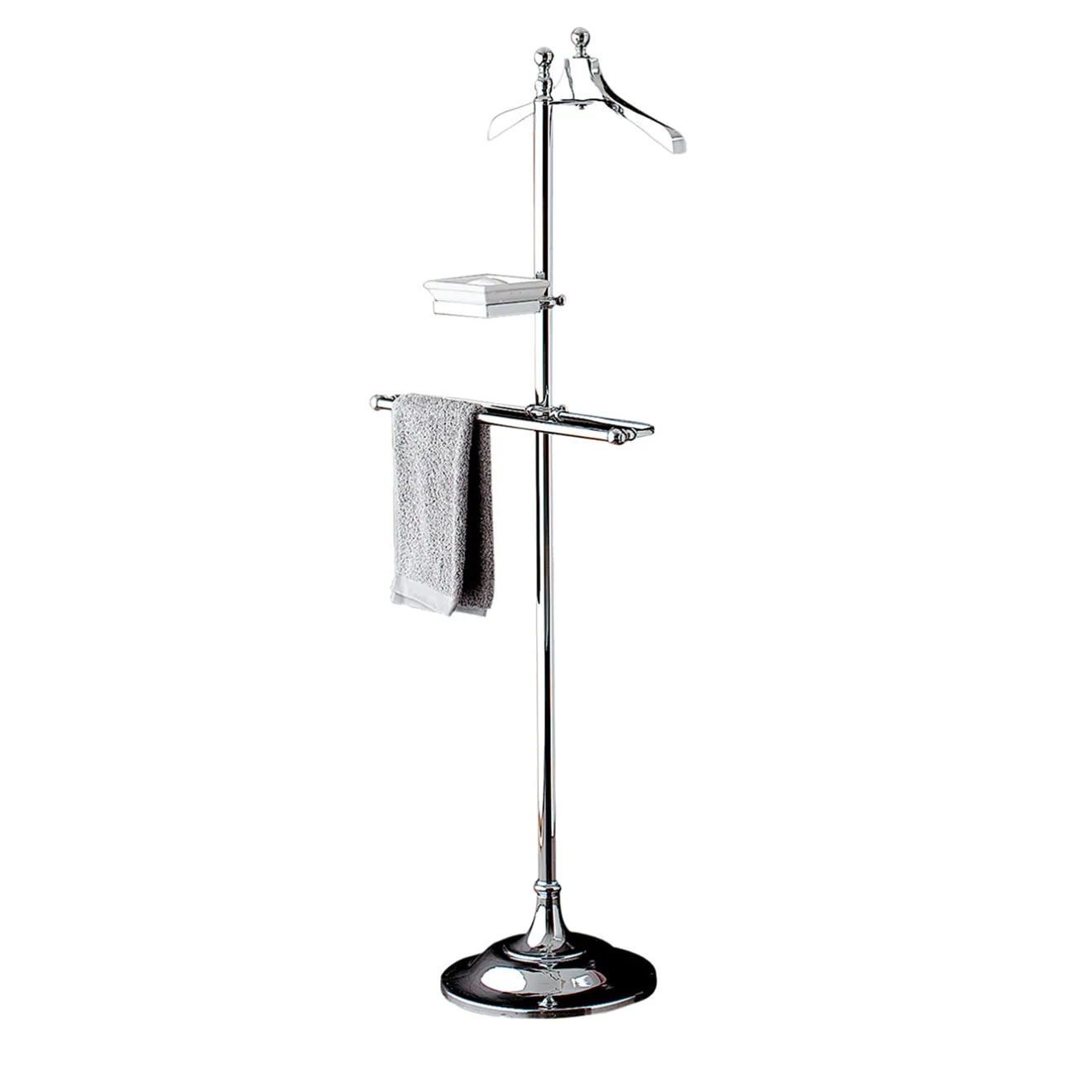 Un design raffinato, ispirato alle antiche dimore e perfetto per le esigenze dell’abitare contemporaneo, per un funzionale portasciugamani e un gancio per accappatoio in ottone, con un raffinato portaoggetti in ceramica bianca. Per ulteriori informazioni, contattare il Concierge.