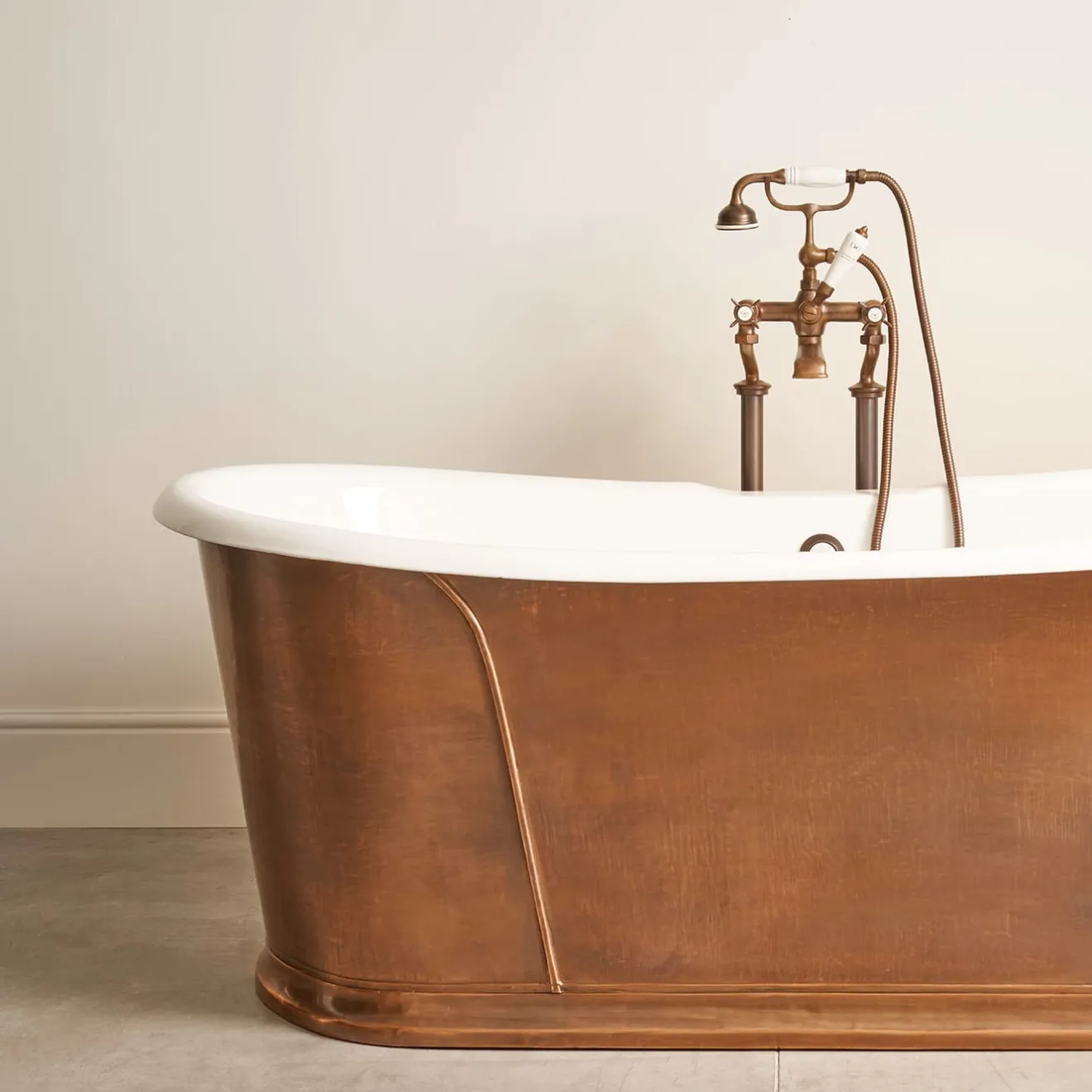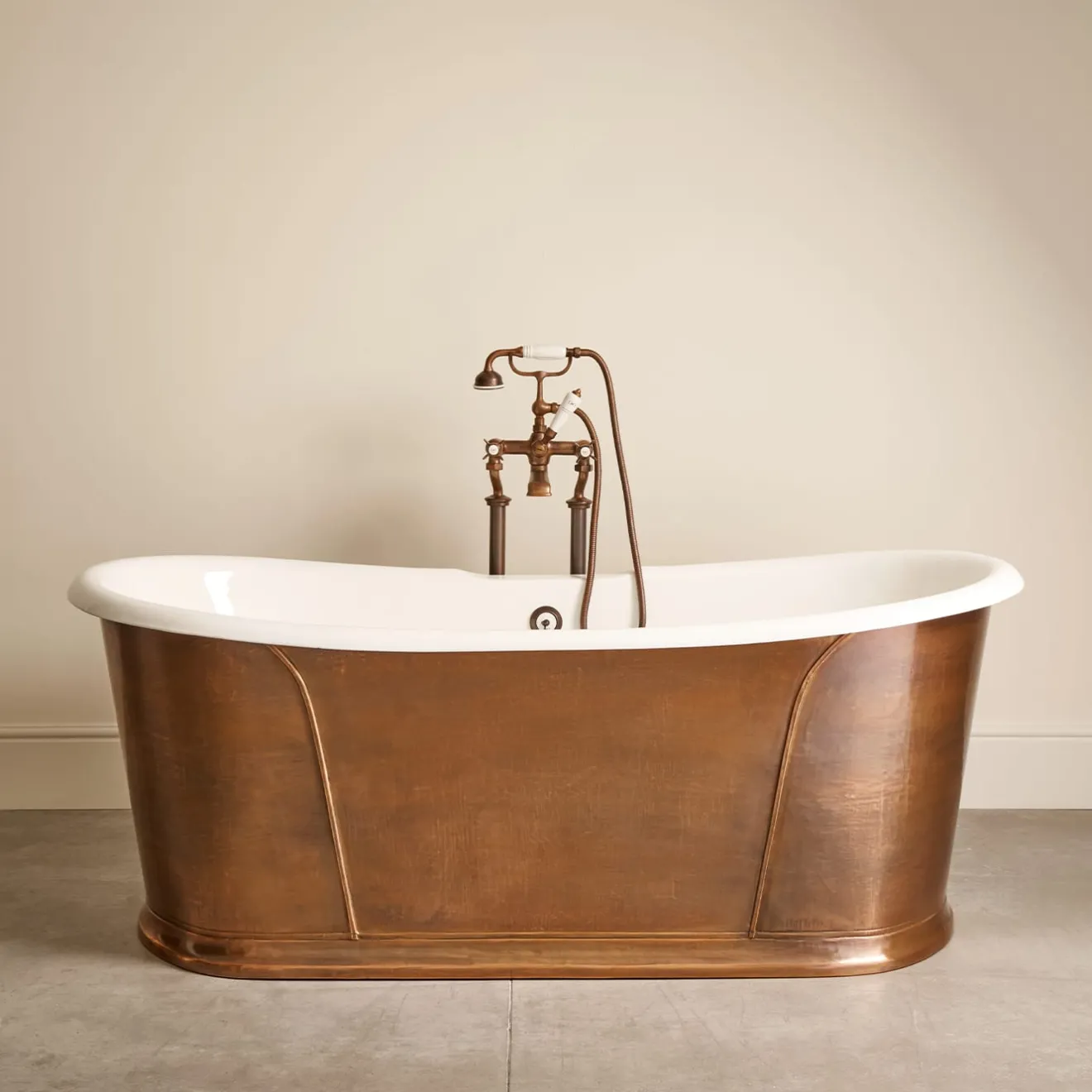 Questa vasca in ghisa, fissata al centro della stanza e ricoperta da una lamina di rame anticato lavorata e rivestita a mano, rende omaggio al rito del bagno più tradizionale. È un pezzo esclusivo che coniuga il carattere forte ispirato a suggestioni millenarie con l’abilità degli artigiani che ancora oggi lavorano i metalli preziosi con infinita passione per la qualità. Per ulteriori informazioni, contattare il servizio Concierge. La rubinetteria non è inclusa.