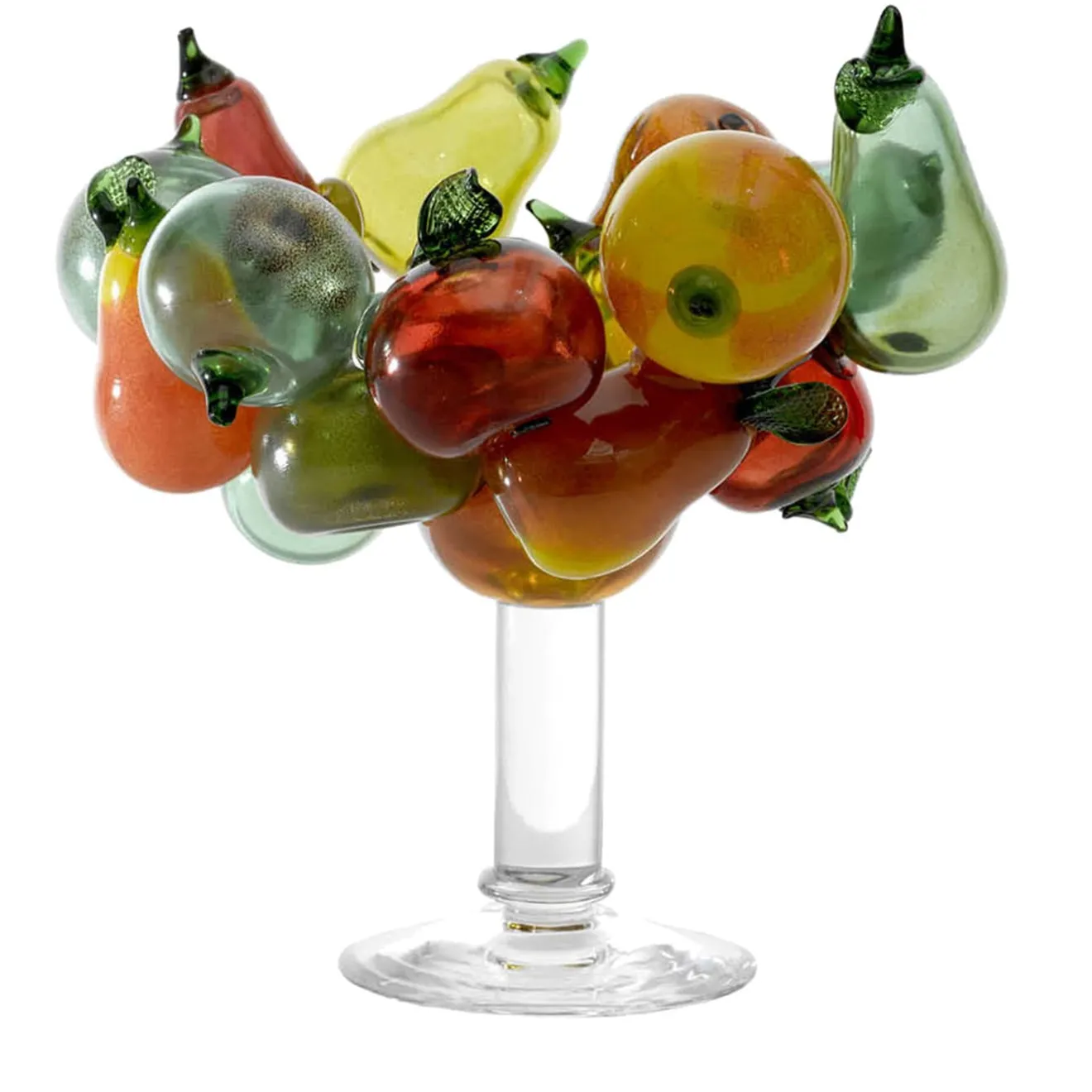 Ispirandosi alla bellezza malinconica delle nature morte, il designer Borek Sipek ha concepito questo sorprendente supporto come una serie di frutti in vetro policromo raccolti attorno a una silhouette centrale a piedistallo. Con una base rotonda e una colonna cilindrica in vetro trasparente, il pezzo sarà una soluzione sofisticata da disporre come punto focale al centro di tavoli classici e contemporanei.