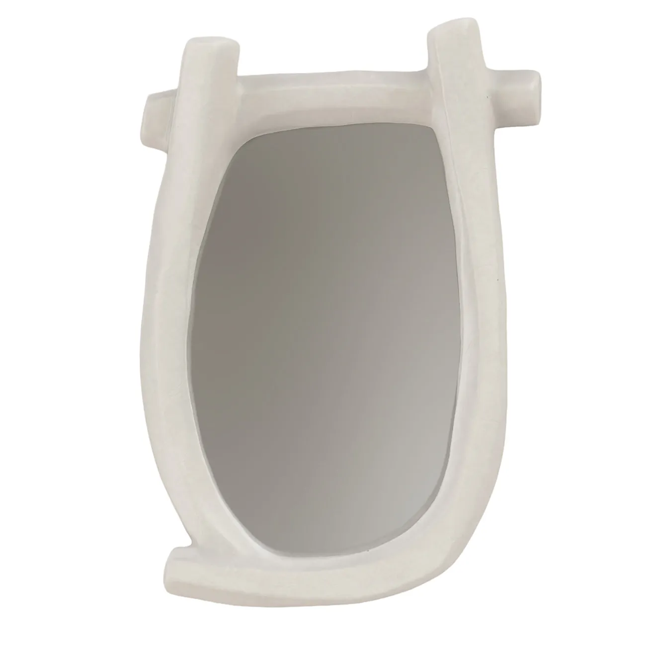 Specchio da parete caratterizzato da una cornice tridimensionale scolpita che conferisce profondità e carattere materico all’ambiente. Realizzata a mano con più strati di stucco, la cornice presenta una superficie volutamente irregolare e tattile. Pensato per essere sia uno specchio funzionale che un elemento decorativo di forte impatto, questo pezzo arricchisce lo spazio con la sua forma scultorea e la finitura artigianale.