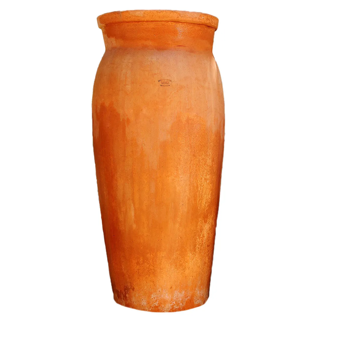 Questa anfora in stile etrusco accentuerà qualsiasi arredamento classico con il fascino caratteristico della terracotta irregolare e rossastra, ottenuta con argilla resistente al gelo proveniente dall’Impruneta, un famoso distretto ceramico vicino a Firenze. Sapientemente lavorata a mano, ogni anfora sfoggia un corpo generoso e rigonfio, contraddistinto da sfumature e dettagli irripetibili, come suggerisce la certificazione CAT che sigilla il design.