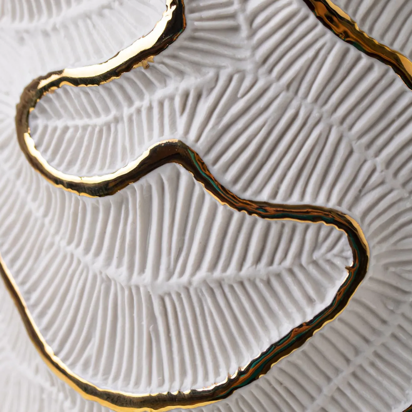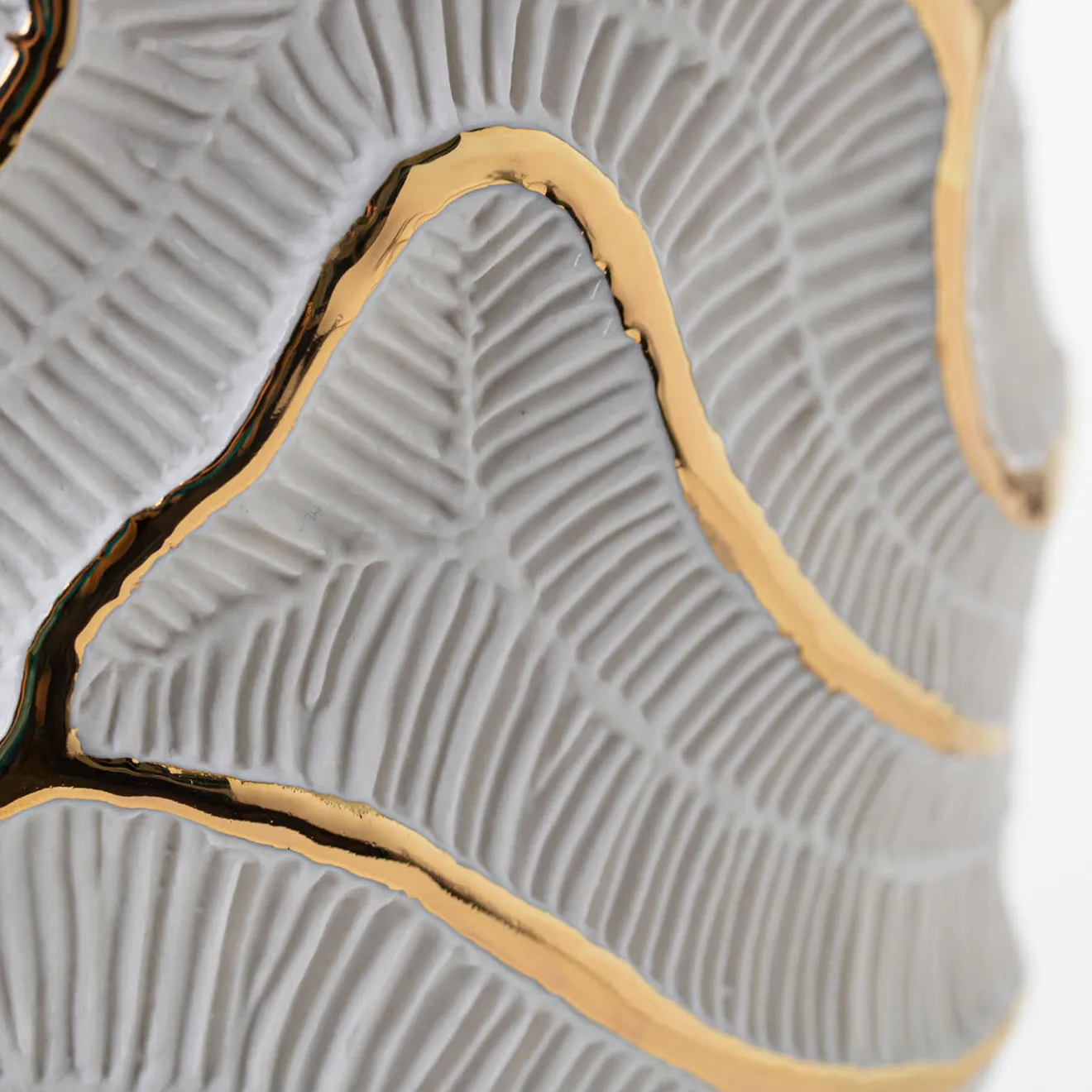 Una suggestiva texture, che simboleggia i fossili delle madrepore, funge da scheletro per questo vaso della collezione Fossilia. La straordinaria composizione, la perfezione della forma e l’accuratezza dei dettagli della porcellana fanno di questo pezzo uno squisito oggetto d’arte. Il vaso è impreziosito dall’uso dell’oro, applicato a mano e fissato con un ulteriore processo di cottura.
