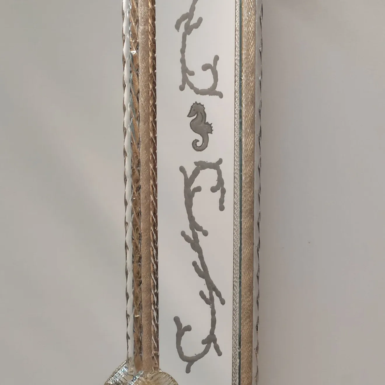Spring è una reinterpretazione in chiave pop-art di uno specchio tradizionale in vetro di Murano. Caratterizzato dalla tavolozza di colori vivaci dell’infanzia di Bradley Theodore nelle isole caraibiche di Turks & Caicos, Spring presenta i classici rosoni e foglie in vetro soffiato di Murano ed è completamente inciso a mano con i motivi di Theodore come coralli, cavallucci marini, stelle marine, teschi e ossa. Questo specchio è realizzato in edizione limitata di un pezzo.
