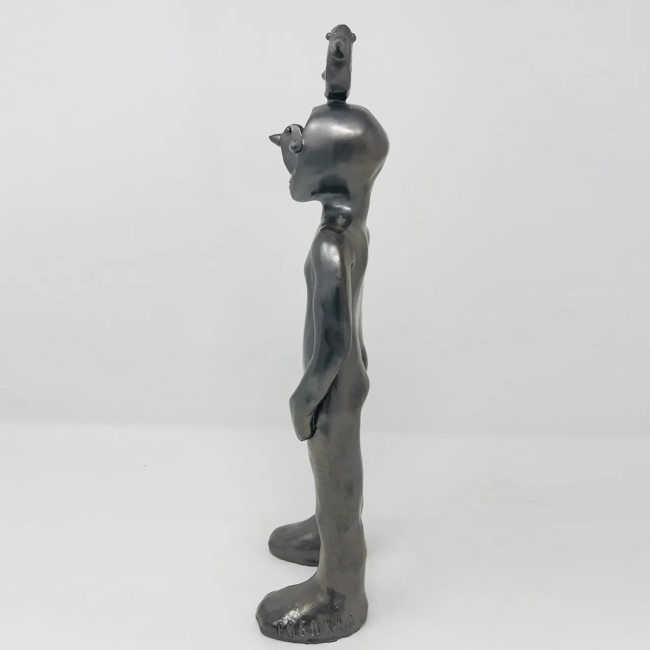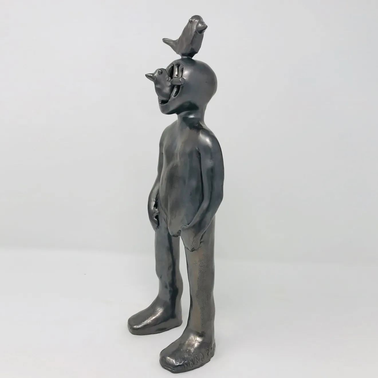 Appartenente alla Collezione Big Humans, questa scultura in maiolica raffigura un palombaro immobile con un gabbiano appollaiato sulla testa e un altro che fa capolino da sotto la maschera. Il processo di lavorazione manuale prevede le fasi di stampaggio e finitura, seguite da un’incavatura finale del pezzo per evitare che si rompa durante le due cotture in forno. La smaltatura satinata viene applicata dopo la prima cottura e fissata nella cottura finale a 930°C. Le personalizzazioni sono disponibili su richiesta, chiedendo al Concierge.