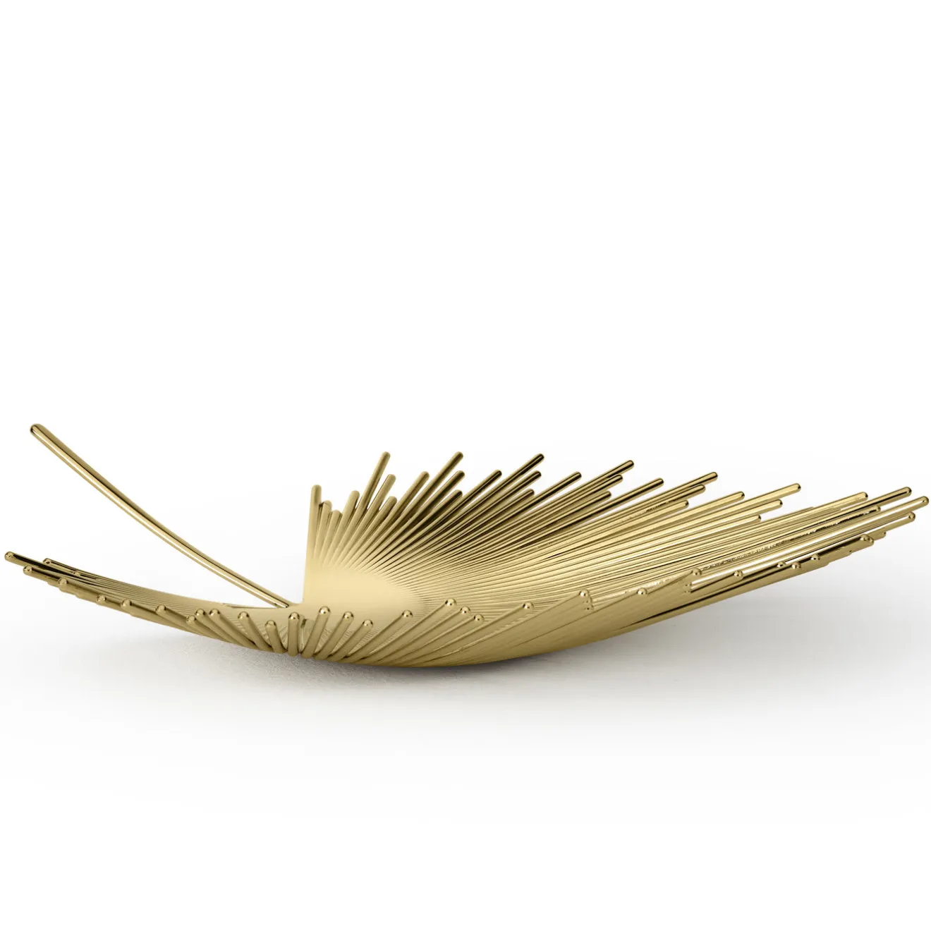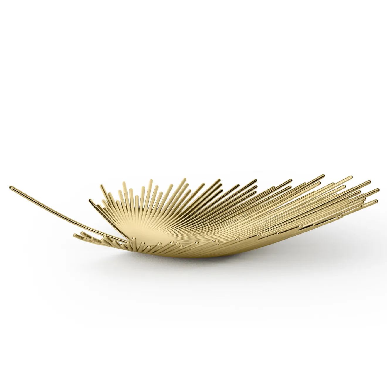 Questa sorprendente fruttiera in ottone fuso è stata disegnata da Nika Zupanc e consiste in una moltitudine di aste che si aprono come una foglia tropicale e brillano come un nuovo sole. Il rivestimento in PVD garantisce l’assenza di alterazioni del colore e di corrosione per 25 anni. Può essere utilizzato per servire il cibo.