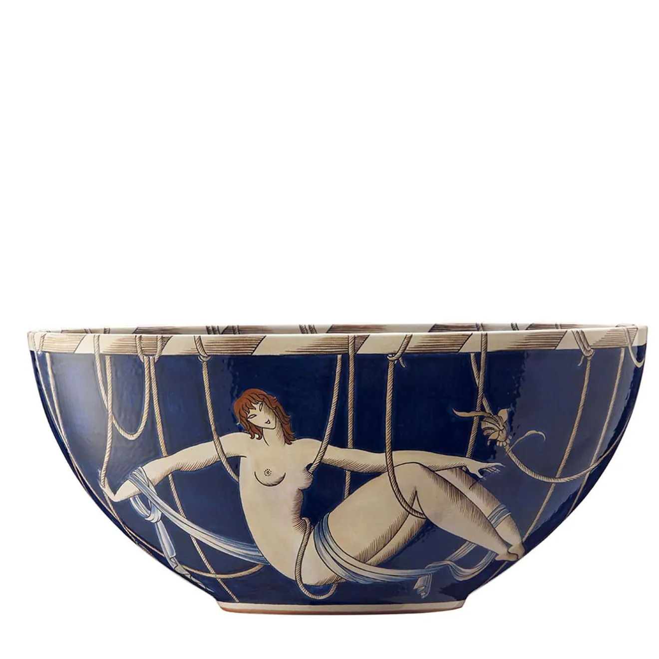 Con grazia ed eleganza, in equilibrio sulle corde, la donna di questo squisito ritratto fa parte della collezione Le Mie Donne. Questa sublime serie di ciotole e piatti è stata disegnata nel 1925 dal maestro Gio Ponti e presenta una serie di figure femminili in stile Art Déco. Acrobate su uno sfondo scuro, queste donne sono i soggetti di questa vera e propria opera d’arte che aggiungerà un accento decorativo unico agli interni moderni.