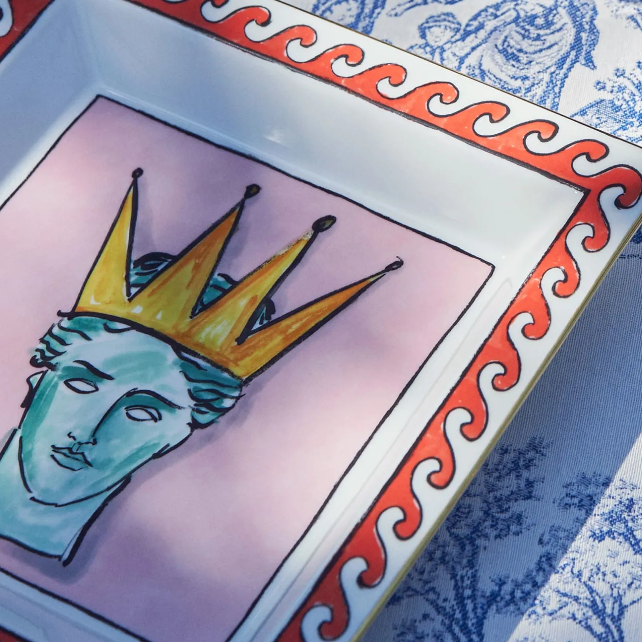 Parte di una collezione esclusiva disegnata da Luke Edward Hall, questa elegante vide poche è realizzata in porcellana fine e ornata a mano con metalli preziosi. L’uso sorprendente del colore e l’estetica moderna interpretano l’antica mitologia greca e romana in un elegante equilibrio tra funzionalità ed estetica, raffinatezza classica e innovazione moderna.