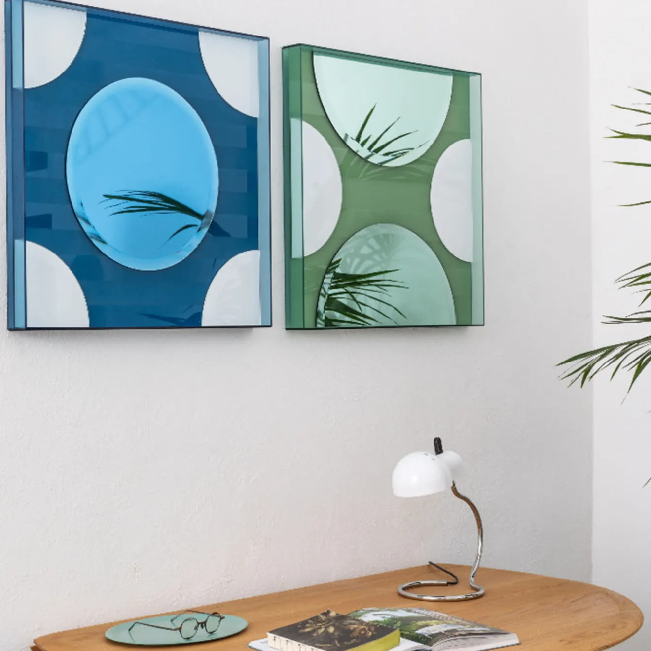 Questo specchio da parete accosta vetri riflettenti opachi, lucidi e colorati in una disposizione artistica per creare un accessorio non convenzionale e di grande impatto, che è un’opera d’arte quanto uno specchio.