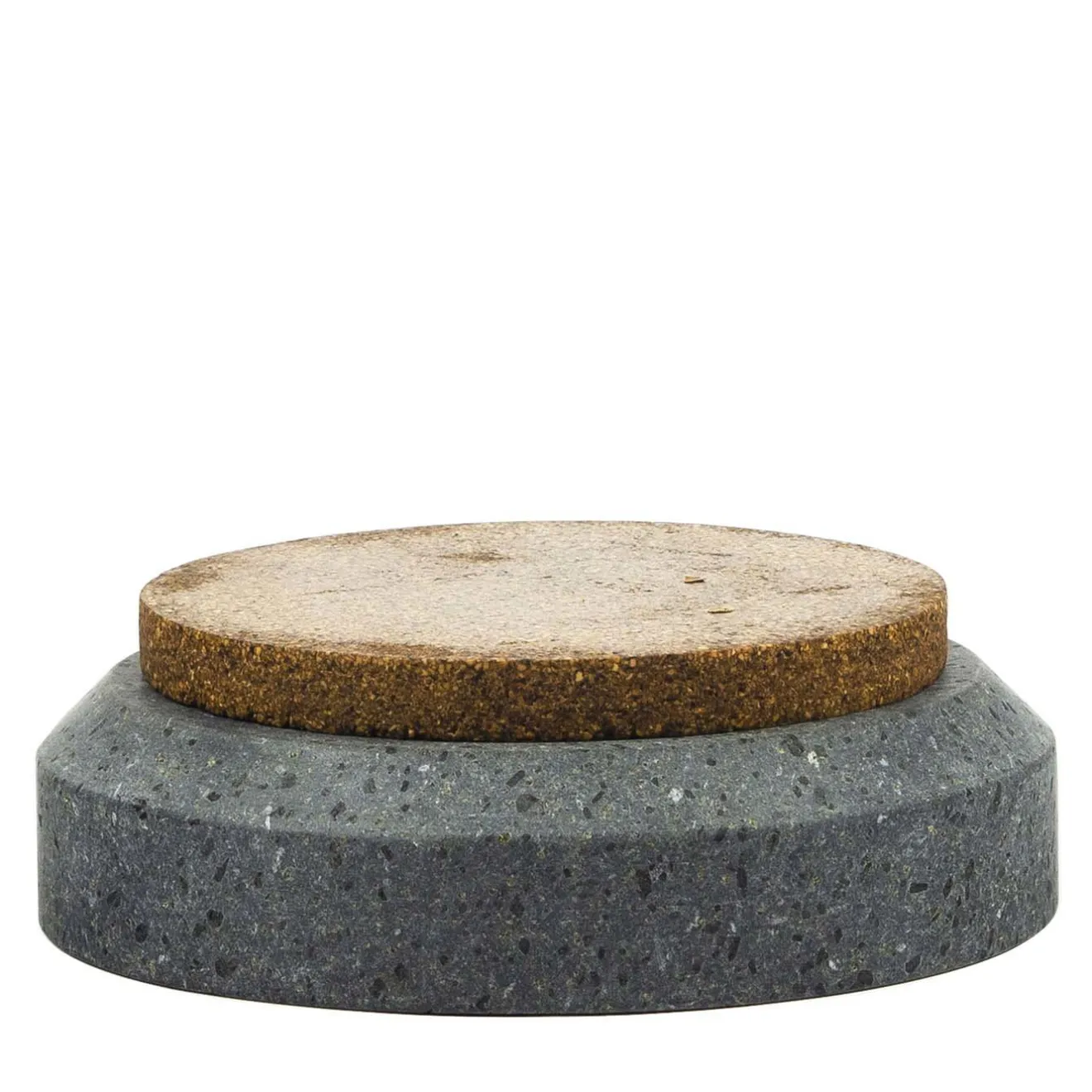 Una collezione composta da tre elementi di contenimento in Pietra di Trani, Pietra Lavica ed Emperador Light con coperchio in Keep Life; un nuovo materiale composito, ecologico e malleabile, ricavato dai gusci di nocciole, castagne, noci, mandorle, pistacchi, arachidi, ecc. Racchiuso nel tempo, il contenitore diventa pietra e il contenuto il suo sigillo.