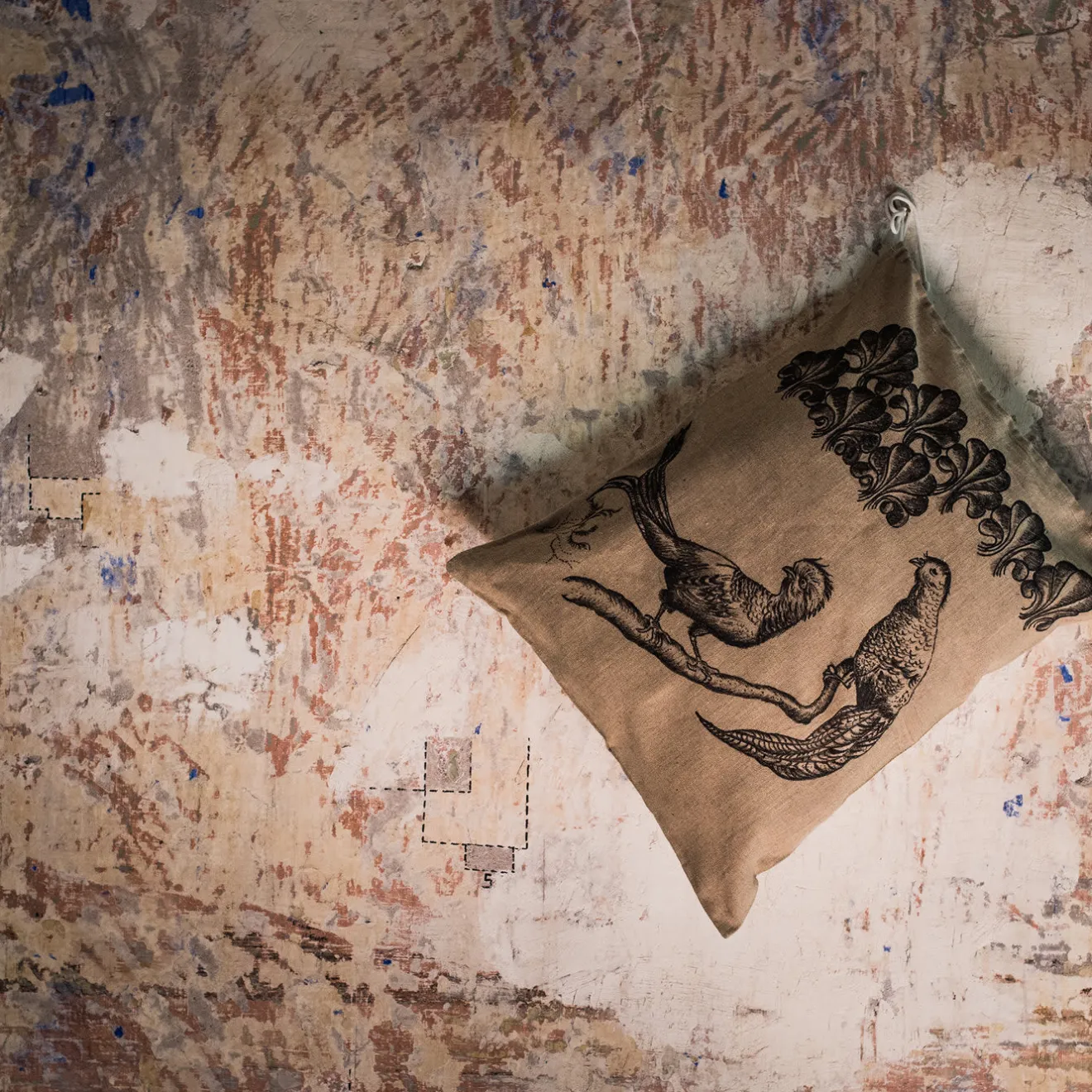 Questo cuscino è stato dipinto a mano con la tecnica del bassorilievo, rendendo la sua superficie estremamente tattile e materica al tatto. È realizzato in lino di alta qualità, resistente e riciclato dal suo uso originario nelle forze armate italiane. Un pezzo d’arredamento su misura per chi è attratto dalla bellezza e dall’inaspettato, ogni articolo è unico e presenta leggere variazioni dovute alla natura del disegno a mano. L’imbottitura non è inclusa.