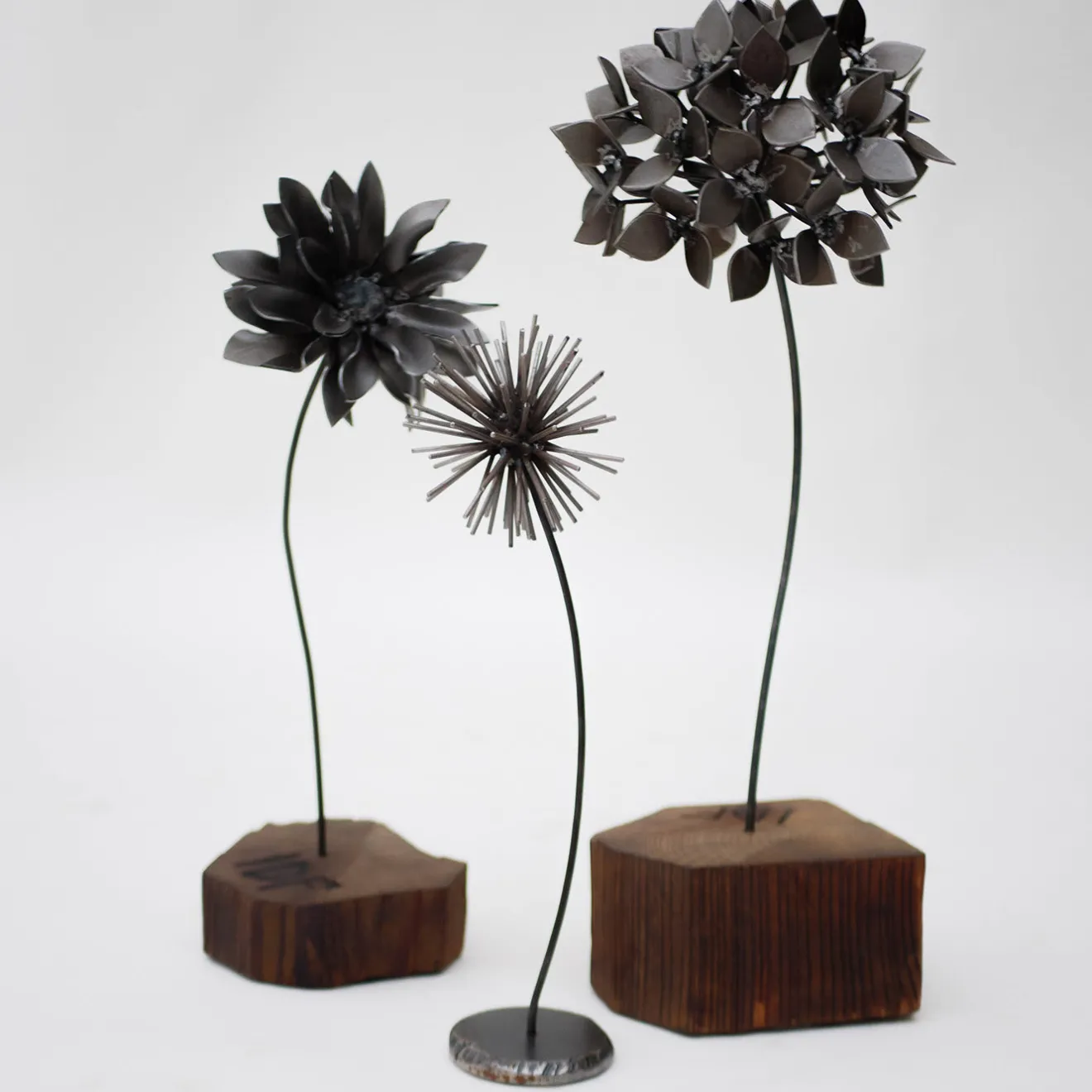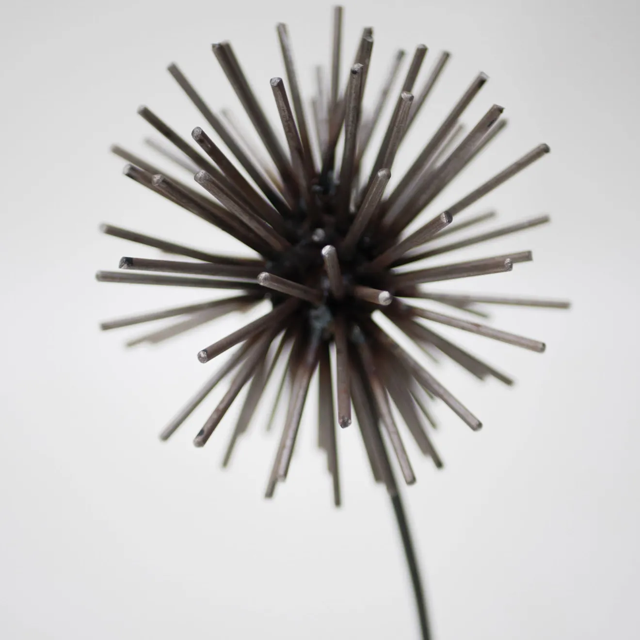 La bellezza fugace e fragile del dente di leone è resa con impareggiabile maestria in questa suggestiva scultura in ferro battuto dall’elegante finitura brunita. Raffinato e delicato, il soggetto rende omaggio all’infanzia del fabbro, quando era un momento spensierato quello in cui si soffiavano le teste dei semi di dente di leone (“soffioni” in italiano) pensando a un desiderio che si voleva realizzare. Uno strato protettivo di olio viene applicato alla silhouette a suggello di un minuzioso processo di lavorazione artigianale.