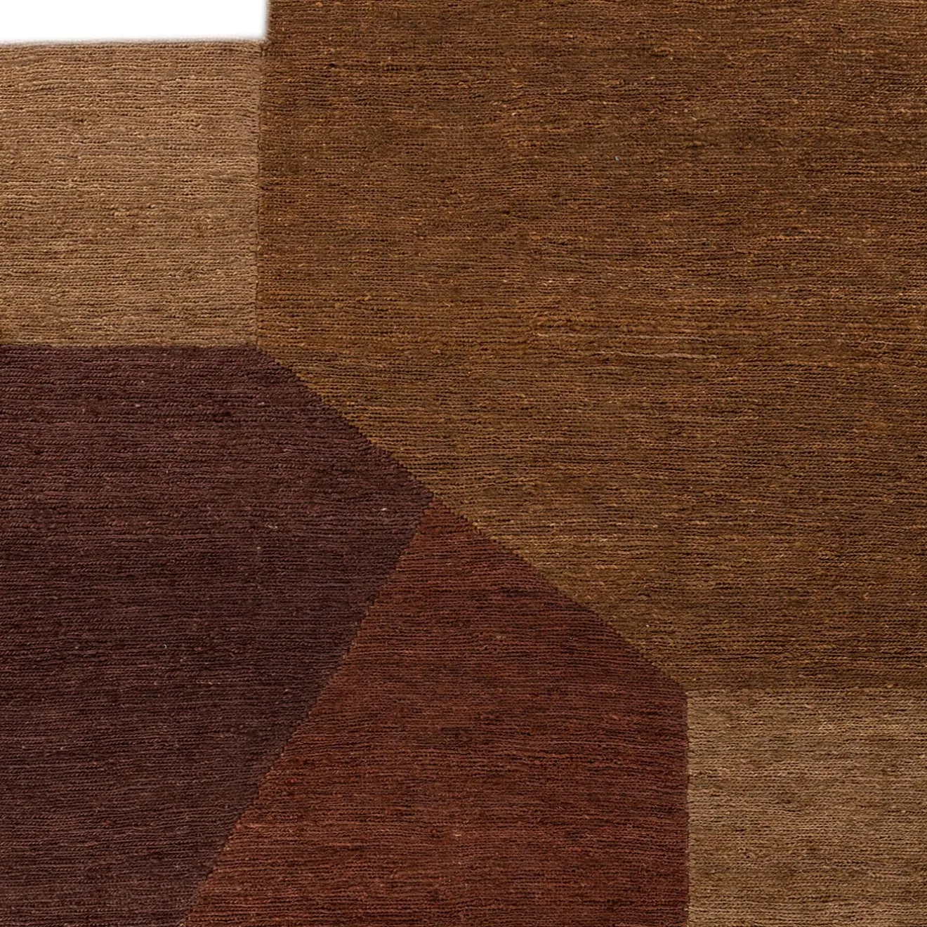 Questo dhurrie a trama piatta in terracotta e marrone oro celebra l’eleganza della terra. Tessuta a mano in juta al 100%, la sua forma leggera e i suoi motivi geometrici astratti aggiungono un tocco di moderna raffinatezza a qualsiasi spazio. La sua palette di colori neutri si integra perfettamente in qualsiasi interno, offrendo calore e profondità senza prevaricare. Una dichiarazione di sobria raffinatezza, questo dhurrie incarna la bellezza grezza delle fibre naturali, portando equilibrio, struttura e fascino senza tempo all’arte di vivere quotidianamente.