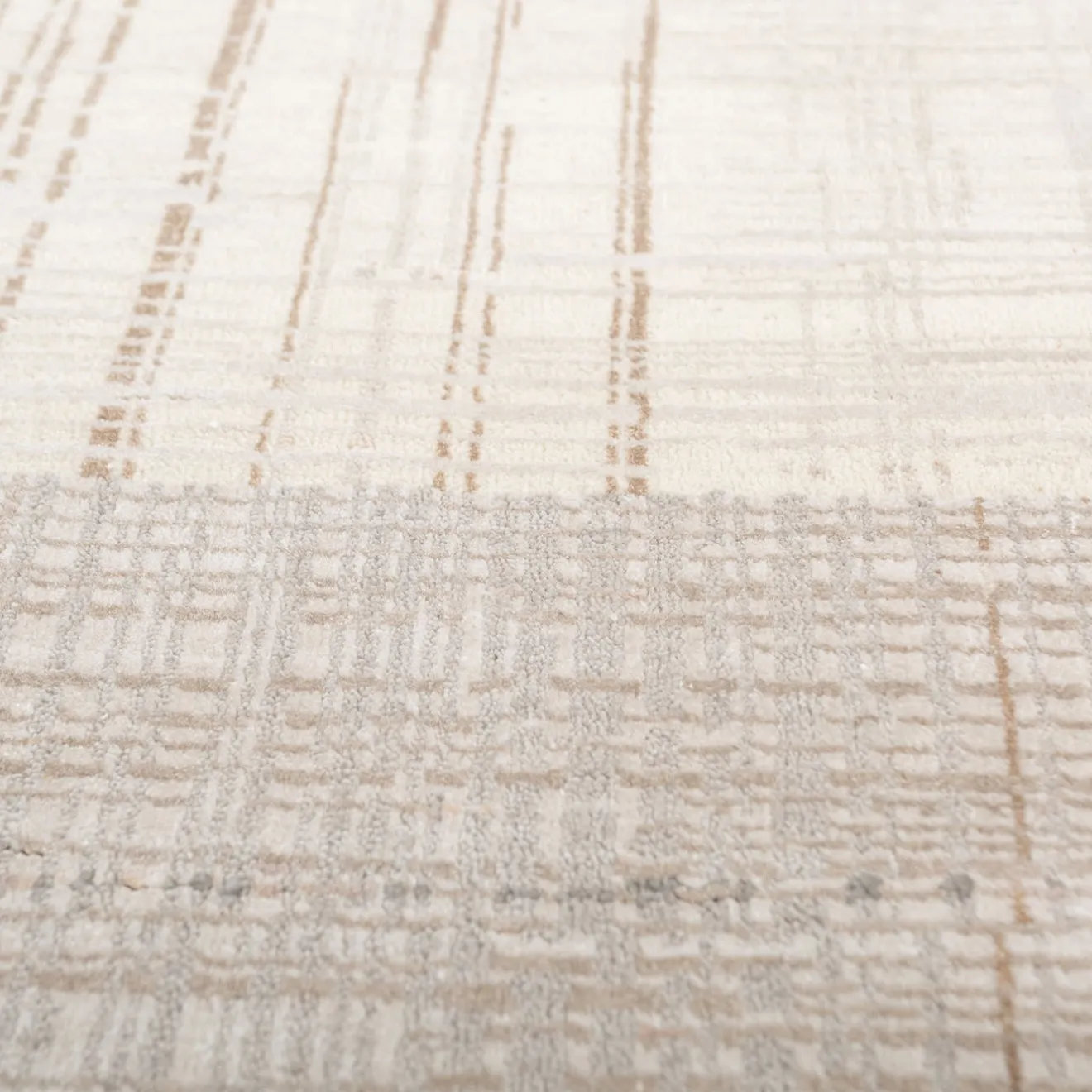 Questo tappeto trapuntato a mano mescola il 60% di lana, il 30% di seta di bambù e il 10% di cotone. La lana offre morbidezza e durata, la seta di bambù aggiunge una sottile lucentezza e il cotone assicura una lunga durata. Il suo intricato motivo geometrico è caratterizzato da forme interconnesse che creano un design visivamente accattivante. La palette di colori – beige, crema e tortora – evoca calma e calore, consentendo di completare vari stili di interni. È disponibile in vari colori, forme e dimensioni.