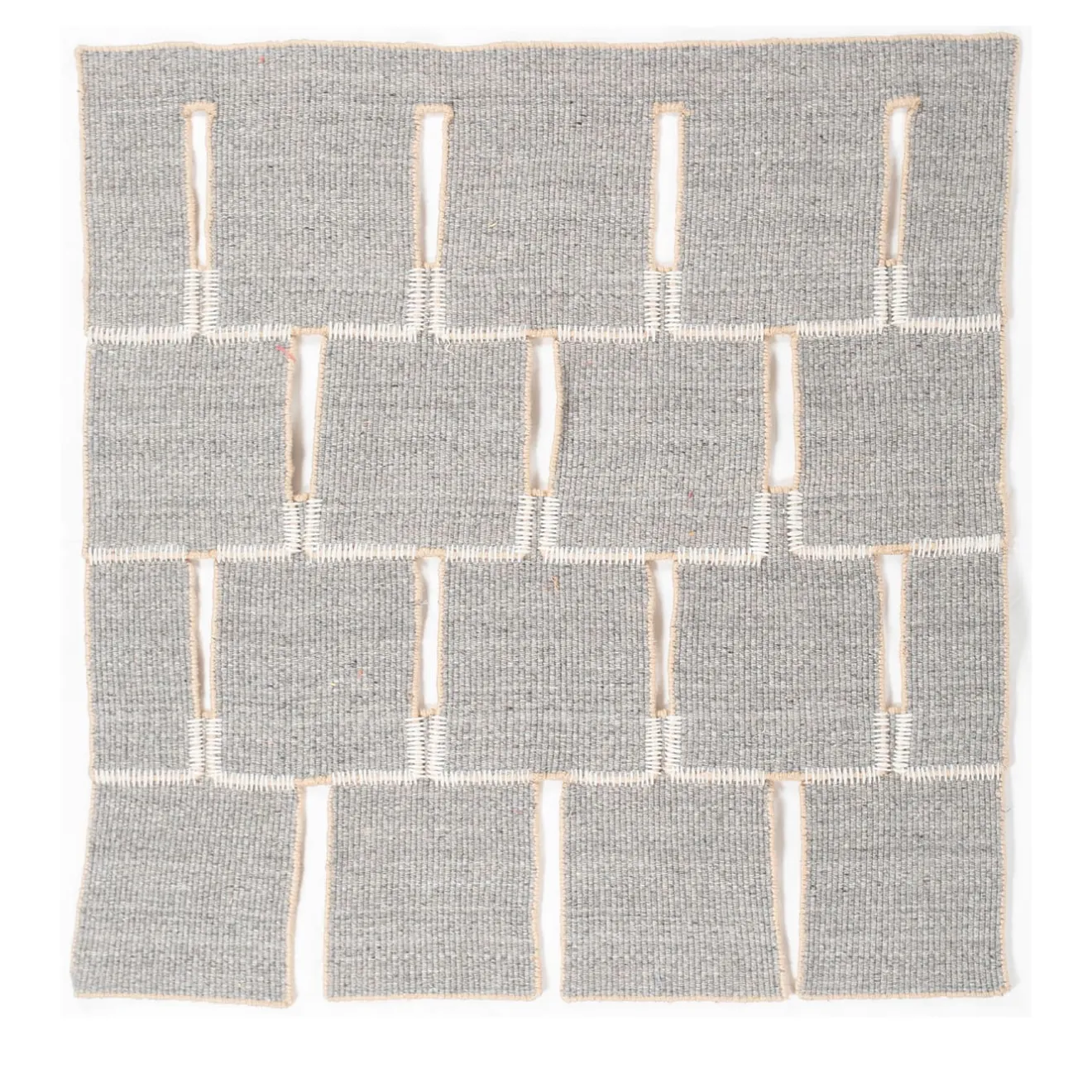 Ispirata all’imperfezione artigianale e alle texture architettoniche, la collezione Façade di Michele De Lucchi reimmagina il tappeto come un “muro senza muro”. Realizzato al 60% in lana e al 40% in juta, presenta una texture morbida e un raffinato gioco di tonalità grigio pietra e bianco. Il design esplora il minimalismo con forme organiche sovrapposte che creano profondità e movimento. È disponibile in vari colori, forme e dimensioni.