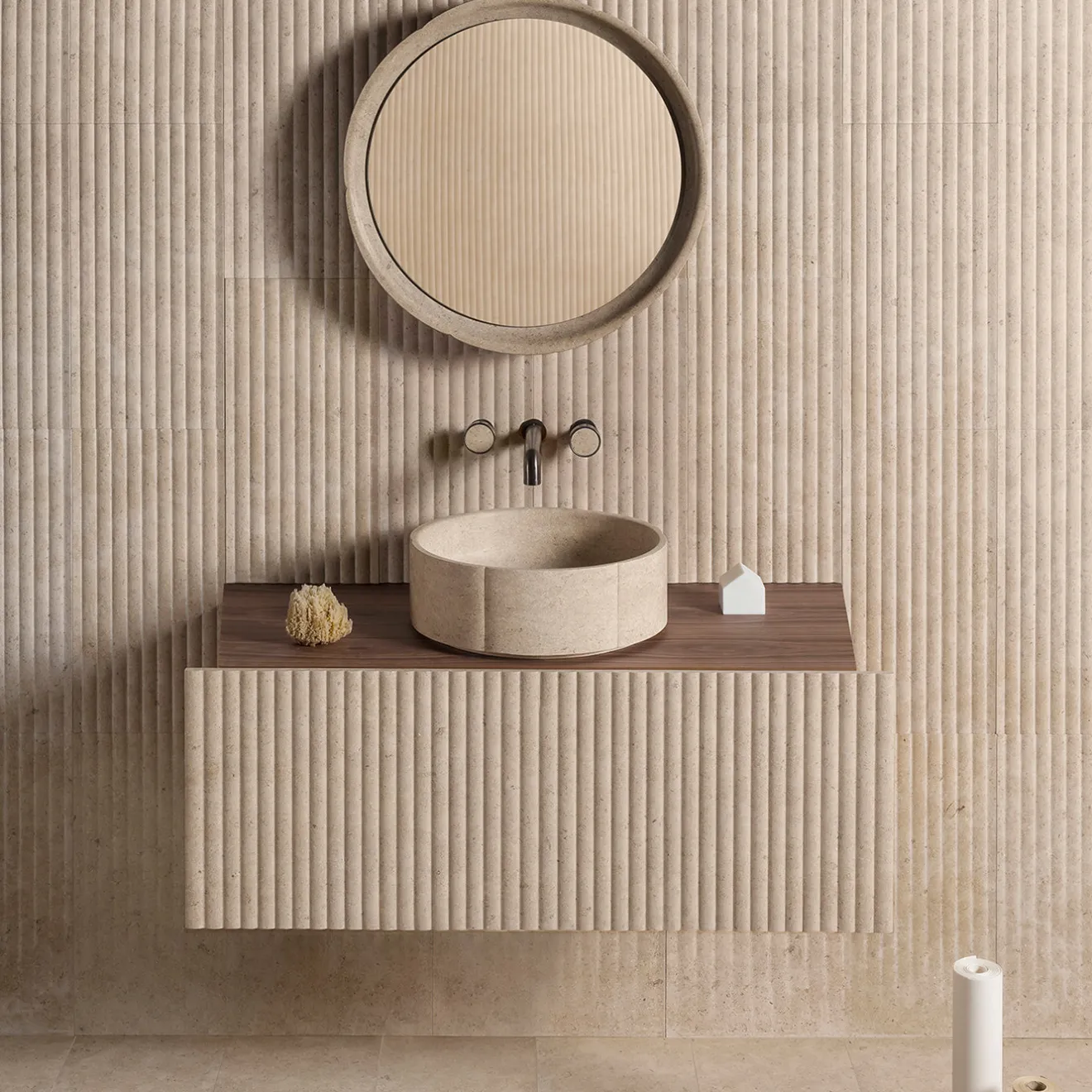 Il lavabo da appoggio Sartoriale presenta un profilo distintivo con pareti lisce e sinuose che si erigliano elegantemente sopra la superficie, creando volumi raffinati. La sua linea verticale ininterrotta si avvolge attorno all’intero perimetro, formando un sottile design a “V” visibile dall’alto. Disponibile in varie varianti di marmo, completa sia ambienti residenziali che hospitality con la sua estetica sofisticata e senza tempo. Contattare il Concierge per ulteriori dettagli.