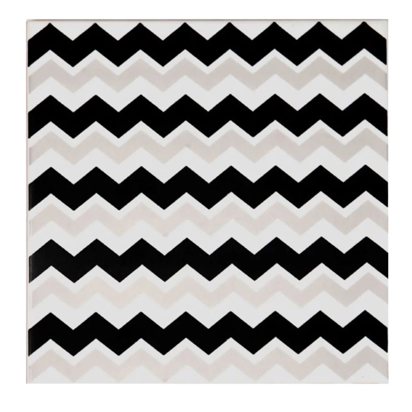12 decorazioni geometriche, serigrafate a mano su smalto satinato, coordinate con 12 colori di tendenza: una molteplicità di combinazioni per seguire le tendenze attuali o crearne di proprie. Le decorazioni sono prodotte nel formato 20×20, mentre i colori sono disponibili in tutti i formati. Colori personalizzabili. La finitura per interni su supporto ceramico è disponibile anche su Bianco Vietri semilucido e Bianco Cemento anche su gres porcellanato, finitura ruvida per esterni.