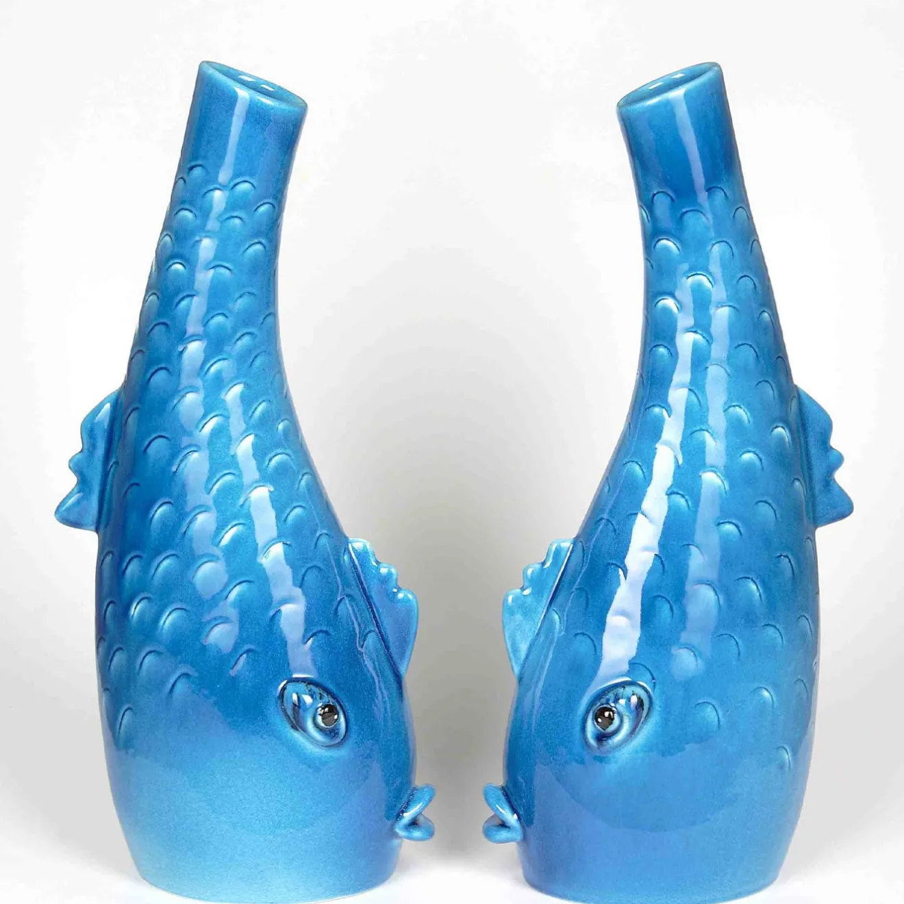 Tritone, grande brocca per acqua o vino o vaso in maiolica di Faenza. Le squame del pesce sono incise e gli occhi sono dipinti a mano. Quando sono in coppia si danno un bacio. Sono stati esposti nel Museo MIC di Faenza. Nel reparto ceramiche d’uso contemporaneo e fanno parte della collezione del museo.
