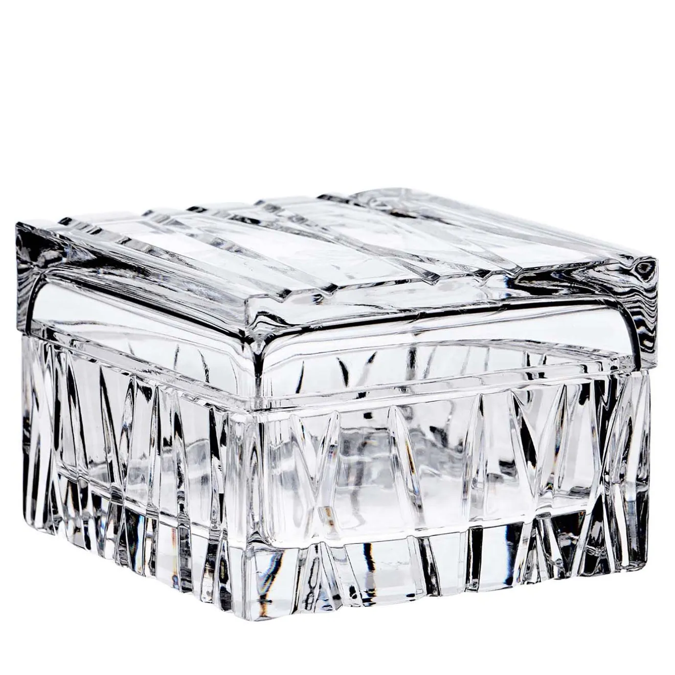 I batuffoli di cotone o i gioielli essenziali troveranno una casa assolutamente raffinata in questa versione piccola della scatola Skyline. Realizzato in pregiato cristallo trasparente, il suo design geometrico minimalista è arricchito da un motivo di scanalature che si intersecano e che creano una texture specifica sui lati e sul coperchio che favorisce una migliore presa. Mario Cioni ha concepito i progetti di questa serie come una coccola in grado di contribuire al benessere dell’utente.