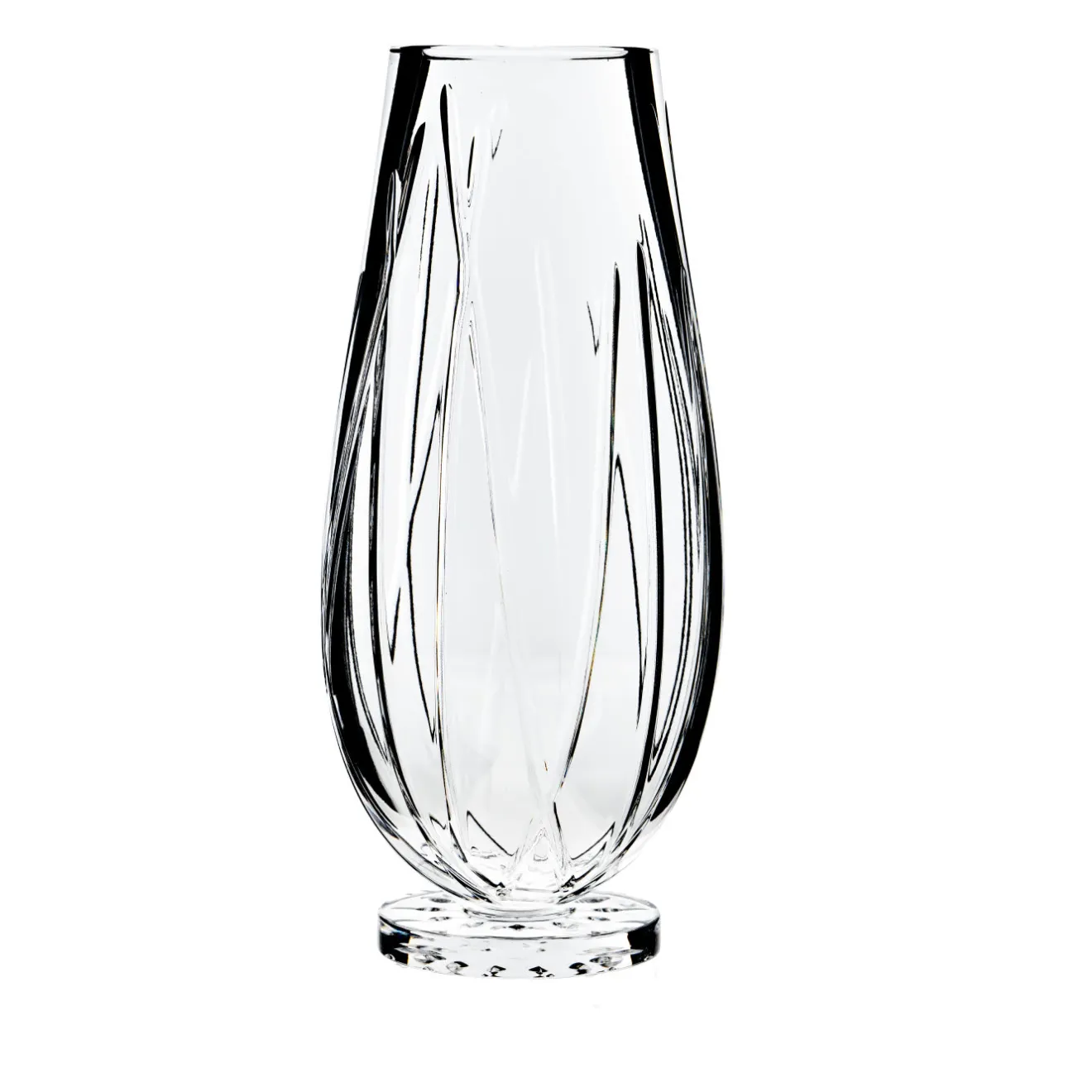 In questo straordinario vaso, il corpo in cristallo e le pieghe verticali della sua superficie creano una dolce sensazione di movimento che è elegante e senza tempo. Interamente realizzato a mano, questo pezzo farà una dichiarazione in qualsiasi interno. Il contenuto di PbO è superiore al 24%. Questo pezzo è disponibile anche in una dimensione più grande con un diametro di 20 cm e un’altezza di 40 cm, e in una dimensione larga, con un diametro di 25 cm e un’altezza di 28 cm. Leggere differenze nelle dimensioni e nei dettagli sono segni di una vera lavorazione artigianale.