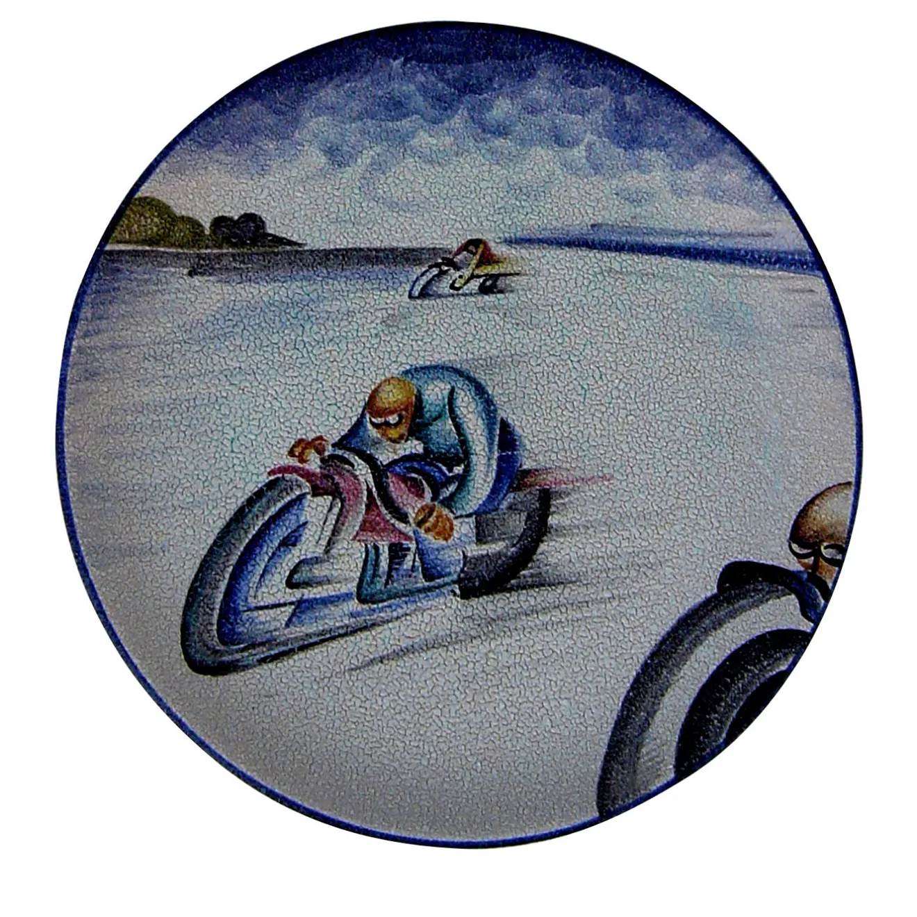 Ispirato al Movimento Futurista Italiano degli anni ’30, questo piatto presenta un automobilista che guida a tutta velocità in stile futurista, evocando la sensazione di movimento rapido. Faceva parte della mostra del 2014 “Futurismo italiano, 1909-1944: Reconstructing the universe” al Museo Solomon R. Guggenheim di New York, con creazioni uniche e irripetibili di Mazzotti. Ogni singolo pezzo è lavorato dal maestro Tullio Mazzotti, ceramista Mazzotti di quarta generazione, e la decorazione è dipinta a mano con uno speciale smalto a buccia d’arancia, chiamato MATT, che si trova esclusivamente presso Mazzotti 1903.