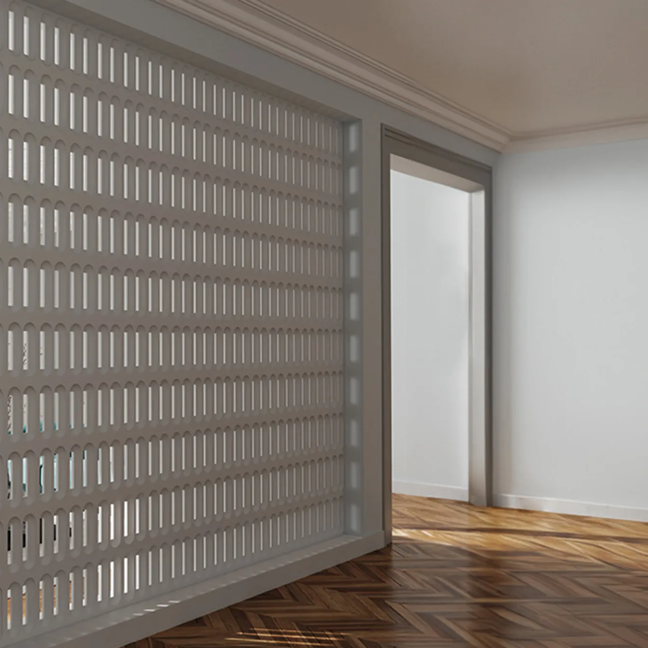 Progettato per separare gli spazi senza dividerli completamente, Caterina reinterpreta gli archi classici con un moderno schema modulare che crea un elegante gioco di spazi pieni e vuoti. Le superfici curve generano un dinamico alternarsi di luce e ombra, rendendo ogni partizione un elemento scultoreo. Realizzato in gesso ceramico verniciabile rinforzato con additivi, è installato su una base rialzata per stabilità e può essere utilizzato all’aperto con la giusta protezione. Il prezzo visualizzato si riferisce all’ordine minimo di 0,9 m² (3 confezioni da 5 blocchi ciascuna).