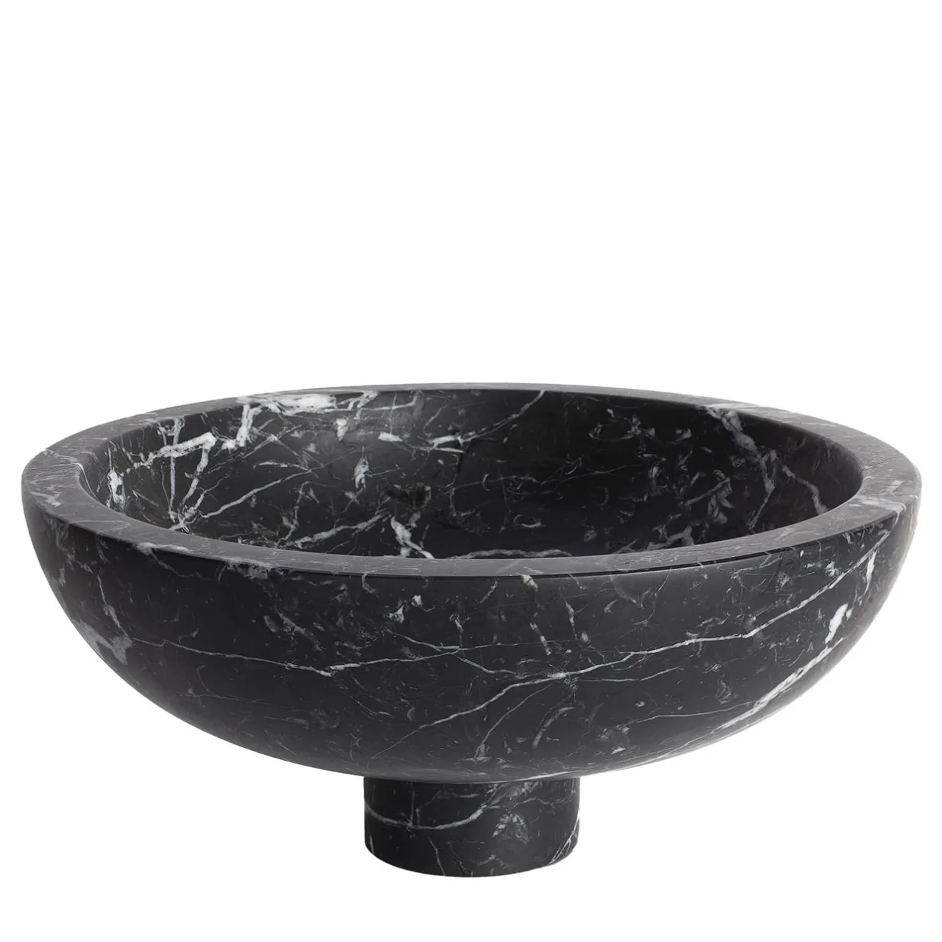Disegnata da Karen Chekerdjian per adattarsi ai piani dei tavoli della collezione Inside Out per un look organico, questa preziosa fruttiera sarà uno splendido accessorio da tavola o un pezzo decorativo a sé stante. La forma minimalista, composta da una base cilindrica con piede e da un recipiente semisferico, è interamente realizzata in marmo nero Marquina di prima qualità. Le intense venature garantiscono la qualità del pezzo unico. Si ricorda che i marmi e le pietre sono materiali naturali e possono differire anche se provenienti dalla stessa cava o dallo stesso blocco. Il prodotto mostrato può differire dagli articoli acquistati. Ogni pezzo è unico.