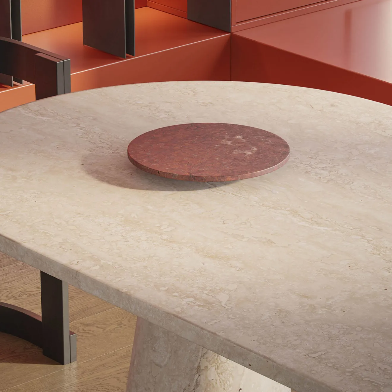 Il Centrotavola Inside Out in Travertino Rosso, progettato da Karen Chekerdjian, aggiunge un tocco audace e funzionale al leggendario Grande Tavolo da Pranzo. Realizzato con meticolosa lavorazione artigianale italiana a mano, questo accessorio rotante piatto scivola dolcemente sulla superficie del tavolo, perfetto per servire con eleganza. Disponibile anche in Travertino Argento, l’oggetto fa parte di una collezione versatile che include portacandele intercambiabili e cesti per la frutta, offerti sia come pezzi di set che come oggetti singoli. Per ulteriori informazioni, si prega di contattare il Concierge.
