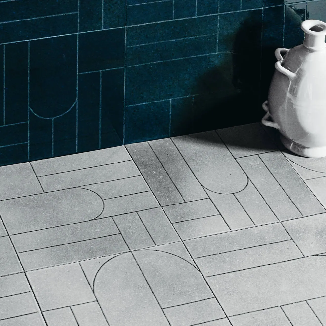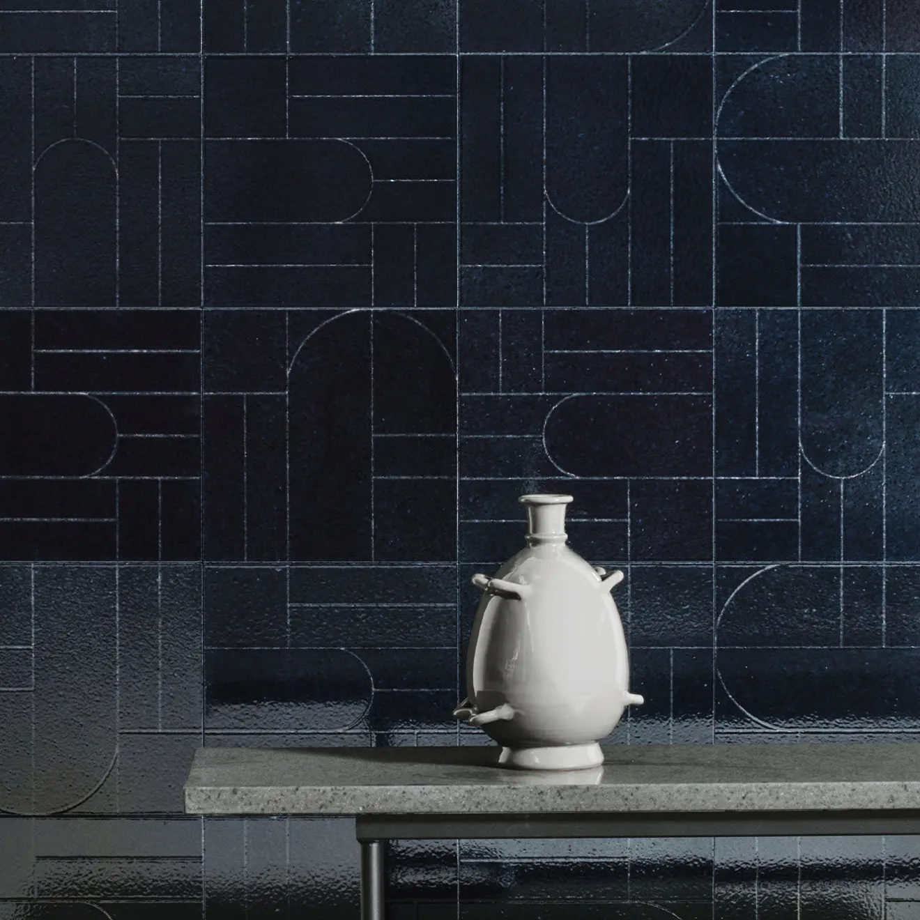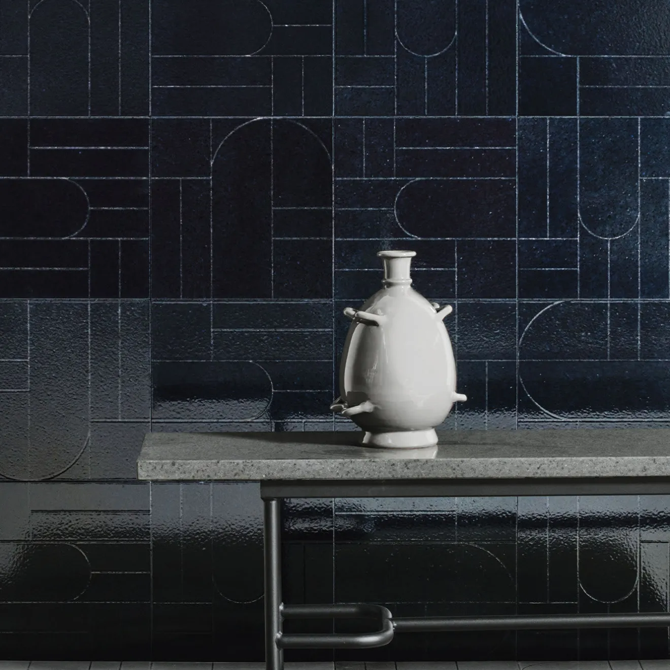 Realizzata in pietra del vulcano Etna, ciascuna delle undici piastrelle che compongono questo set è stata realizzata a mano dai maestri Nicolò e Fausto Parrinello a Caltagirone, in Sicilia. Dallo smalto blu emergono motivi geometrici ispirati all’architettura tradizionale siciliana, una decorazione che conferisce un carattere raffinato sia ai rivestimenti che ai pavimenti. Resiste agli urti e agli sbalzi di temperatura.