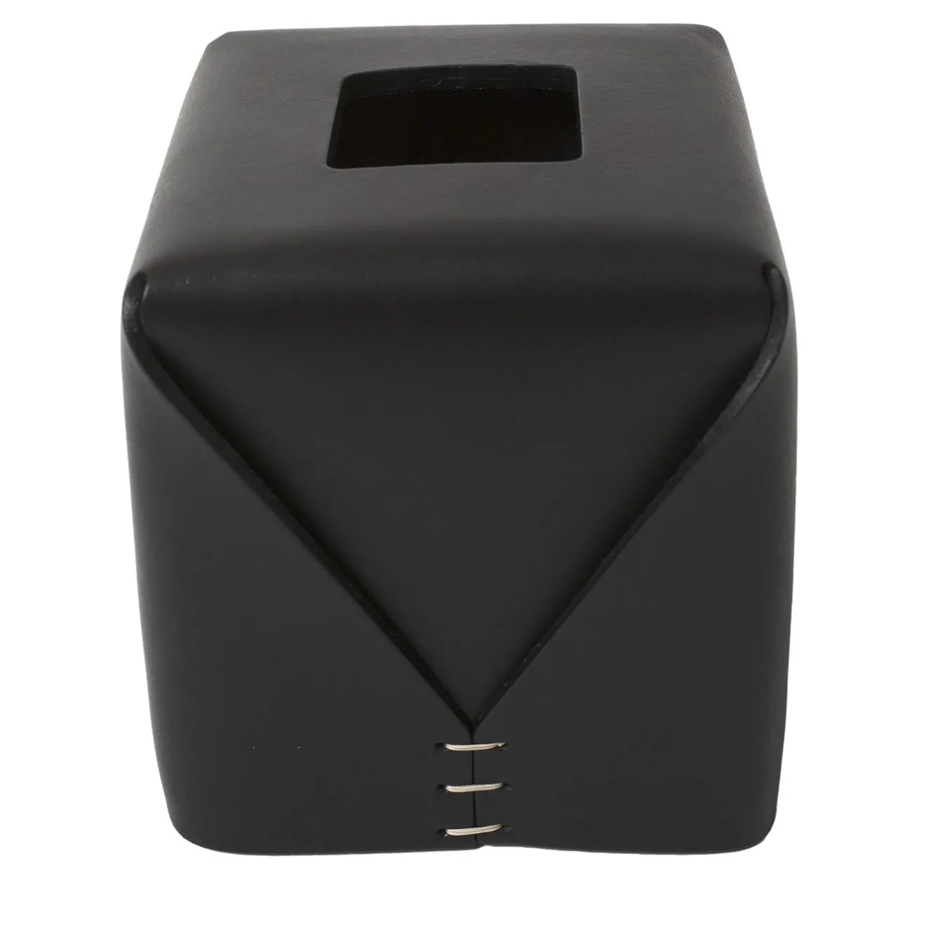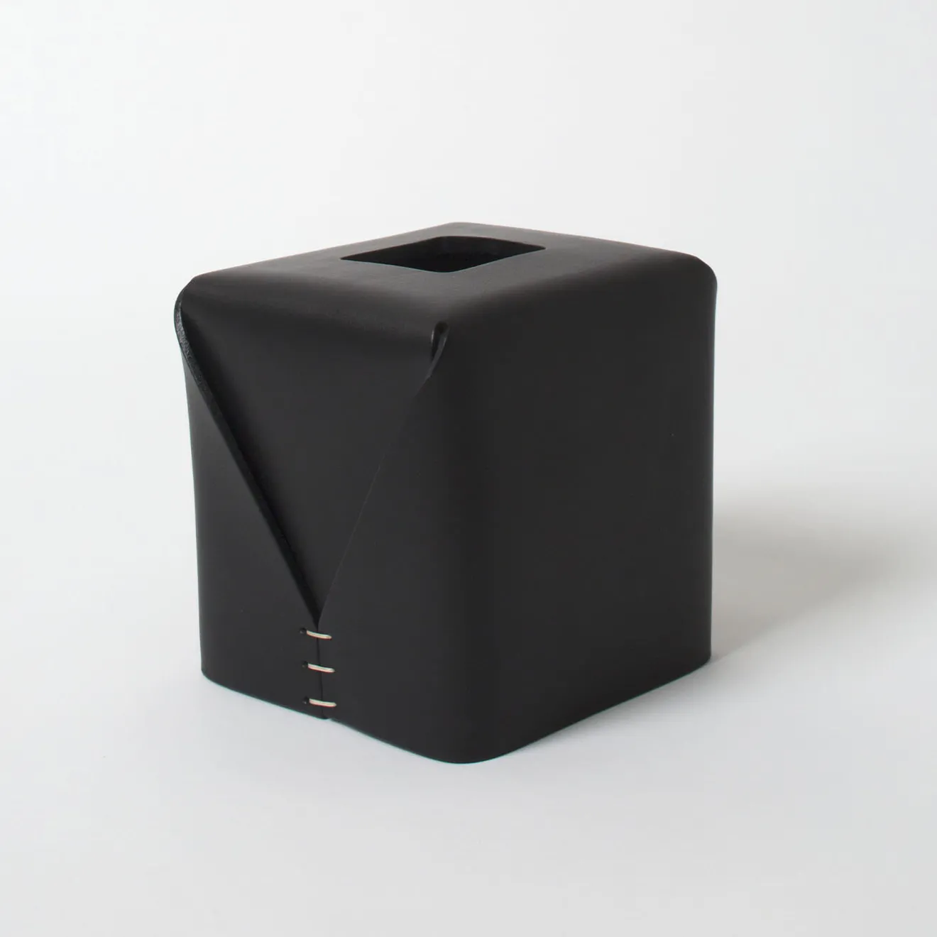 Accessorio esclusivo per completare un comodino o una scrivania, questo porta fazzoletti in stile contemporaneo sintetizza semplicità e lusso. Solo pochi tagli e pieghe definiscono la sua silhouette cubica ottenuta da un unico foglio di pelle nera perfezionato con cuciture manuali. Sono disponibili diverse varianti di colore e una versione rettangolare; per informazioni dettagliate, contattare il Concierge.