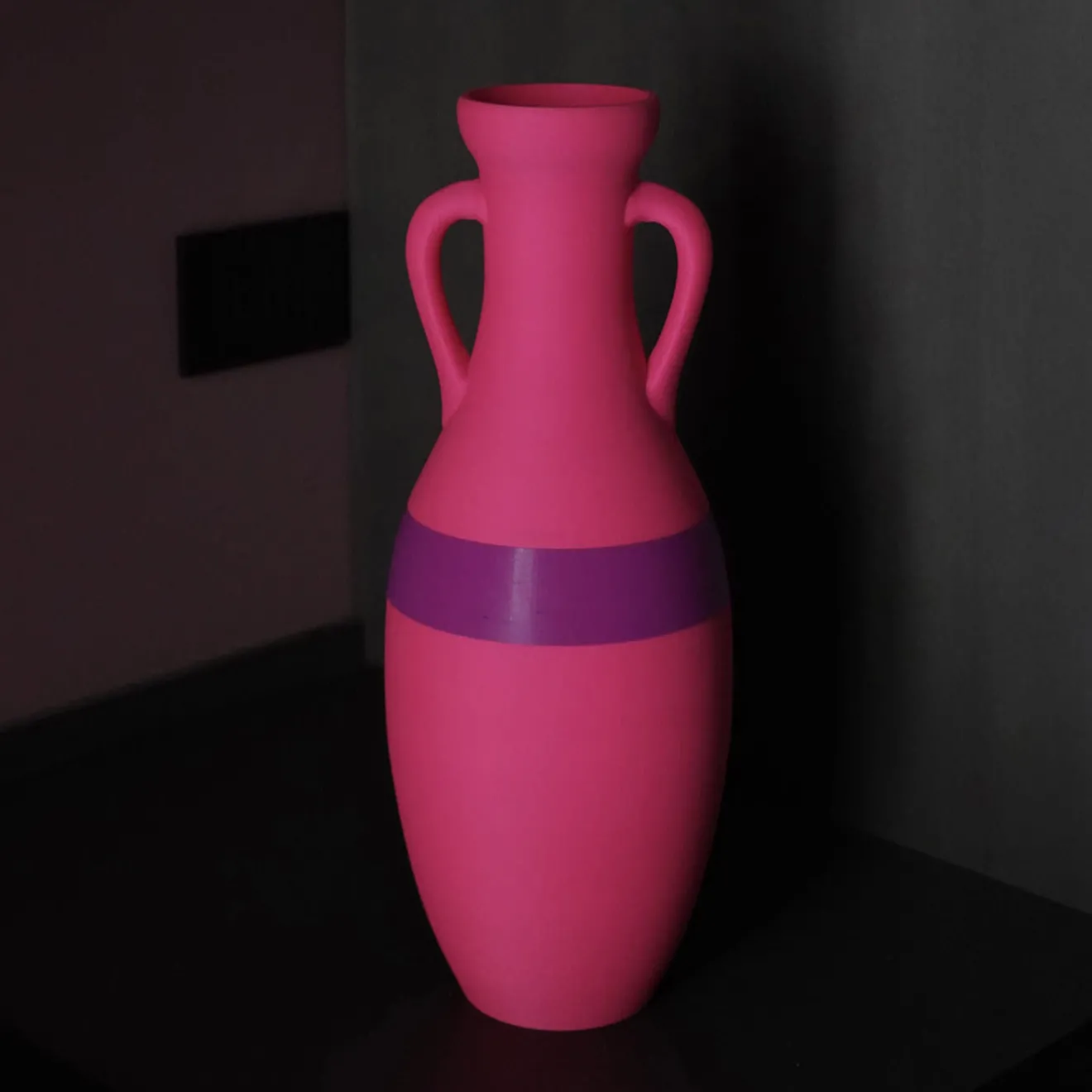 Questo vaso è una reinterpretazione pop della forma archetipica delle anfore romane. L’ispirazione principale per questo oggetto è stato il sito archeologico di Montestaccio studiato da Heinrich Dressel. Il vaso è prodotto con l’uso della stampa 3D e della migliore qualità di PLA (termoplastica derivata da risorse rinnovabili, compostabile in impianti industriali). Questo vaso sostenibile ed elegante è il design perfetto per un ambiente chic.